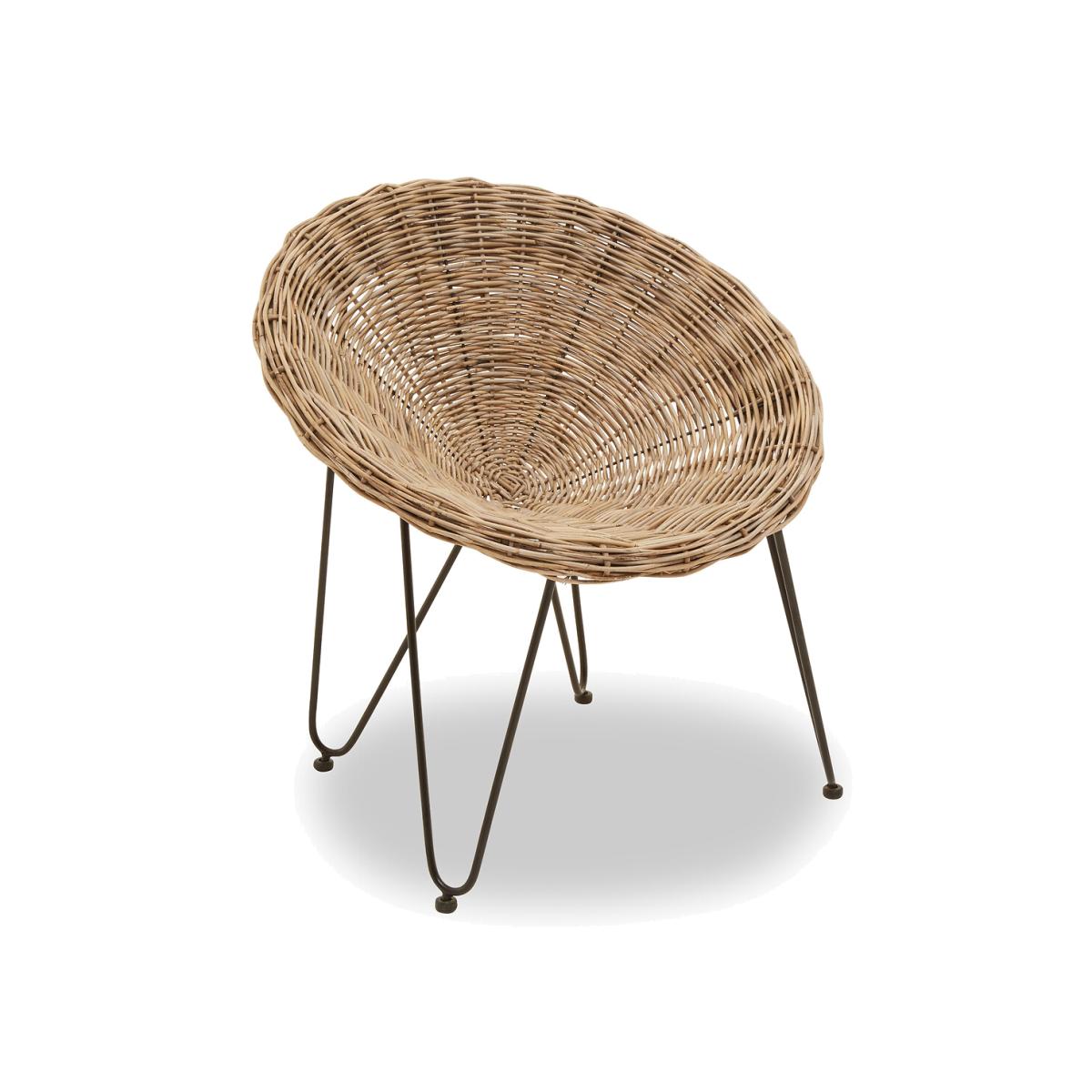 Made from natural Kubu rattan, this chair has a natural seat that is skilfully hand weaved to create a rounded design. The seat offers depth for comfortable seating supported with black finish hairpin legs. Product details Handwoven Natural rattan Assembly required Care instructions This product may be used outside with the recommendation that it is either brought back indoors or covered when not in use. Weight capacity 100 kg Product Composition - Wood, Metal. Product Dimensions - 61 cm x74 cm x82 cm , Weight - 4.6 KGPackage Dimensions - 100 cm x 100 cm x 23 cm, Weight 5 kg. This product will be dispatched by one of our trusted suppliers. You’ll be contacted by their selected courier about your delivery. PREMI01