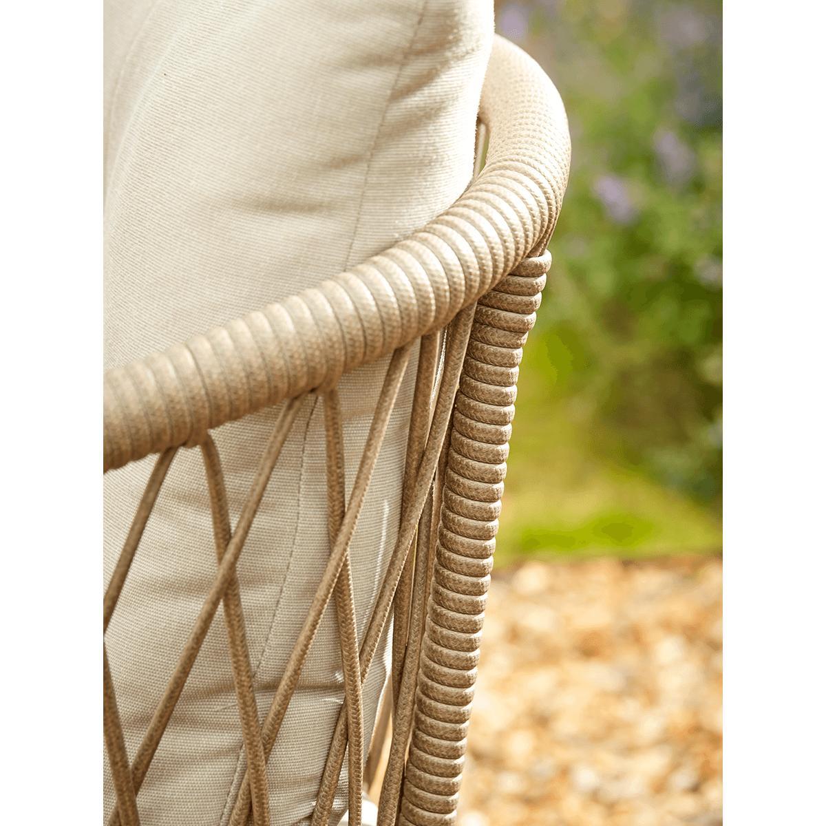 The woven rope bistro set is a practical yet stylish addition to both traditional and contemporary garden spaces. I love how its natural wicker aesthetic lends a relaxed, inviting vibe perfect for casual dining or morning coffees. It works particularly well in gardens with neutral or earthy tones, but can also be styled contrastingly with colourful cushions or tableware for a vibrant feel. When styling, consider adding textured cushions and a small outdoor lantern or candles to enhance cosy outdoor gatherings. It's a versatile set that lends itself to various setups, whether nestled amongst shrubbery or set on a patio, making it a reliable choice for a variety of outdoor spaces.