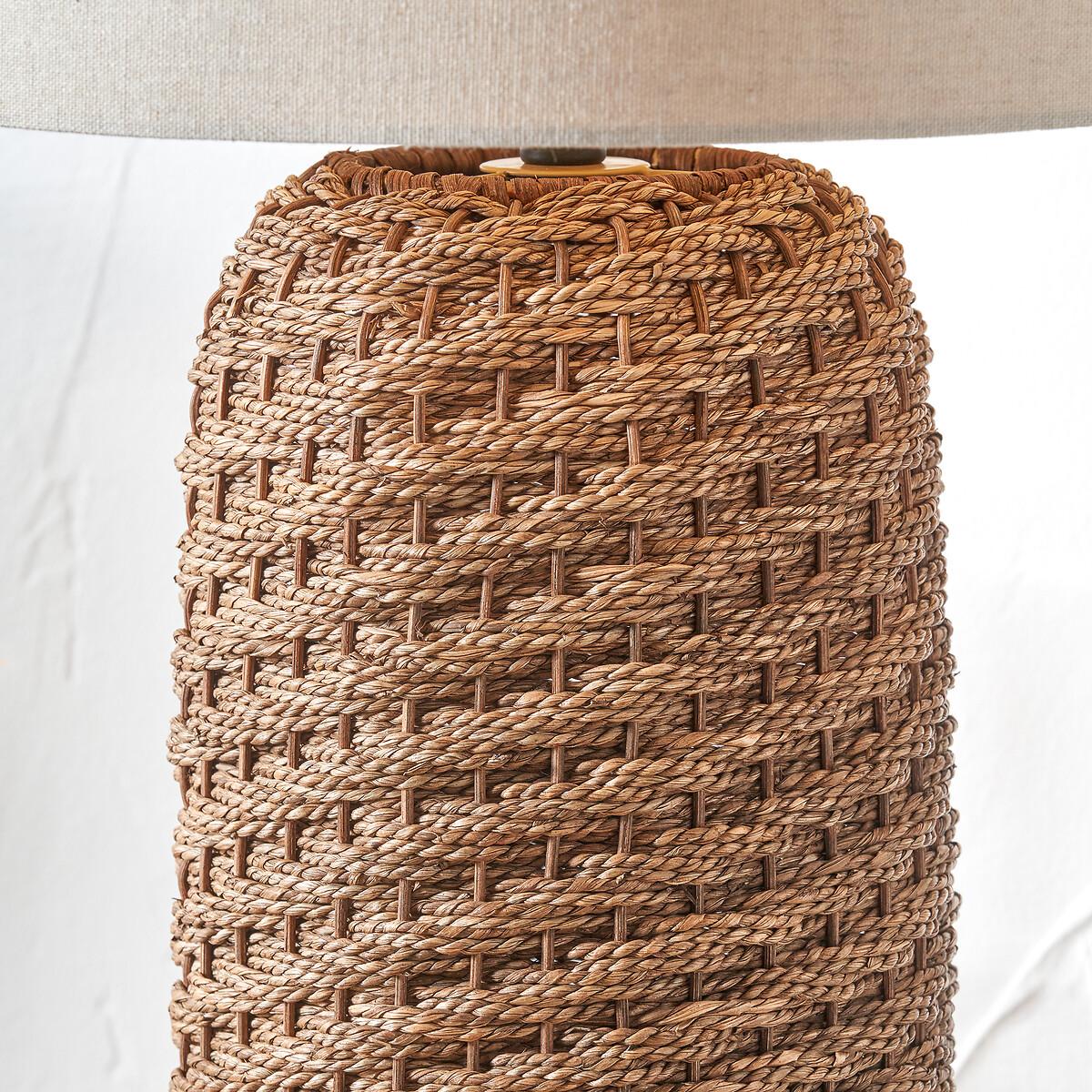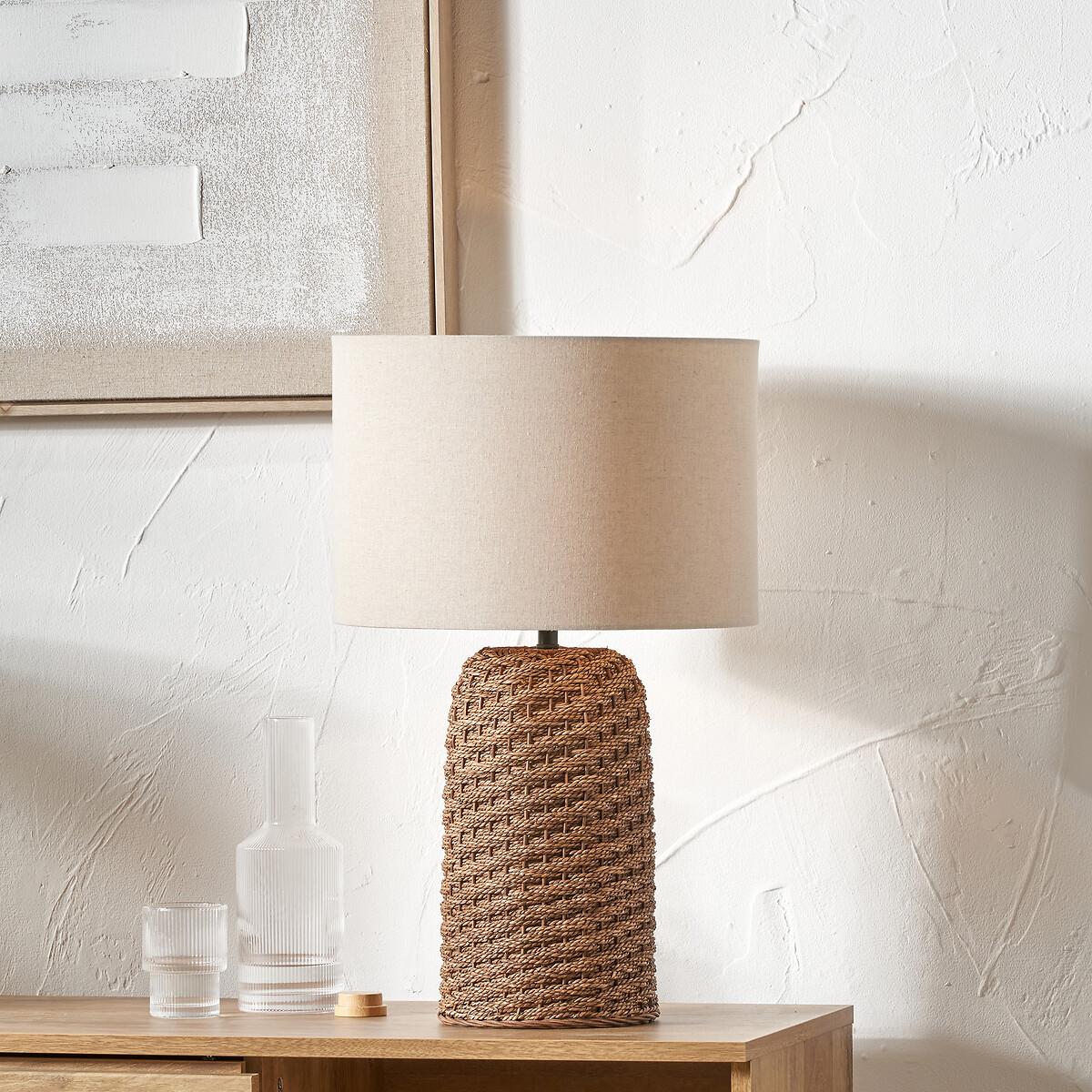 This woven seagrass table lamp in a brown hue will be a perfect addition to your home, adding a natural texture and tactility. This beautifully crafted base is finished off perfectly with a tall, naturally textured, lined linen cream lampshade, that will suit a multitude of interior styles.