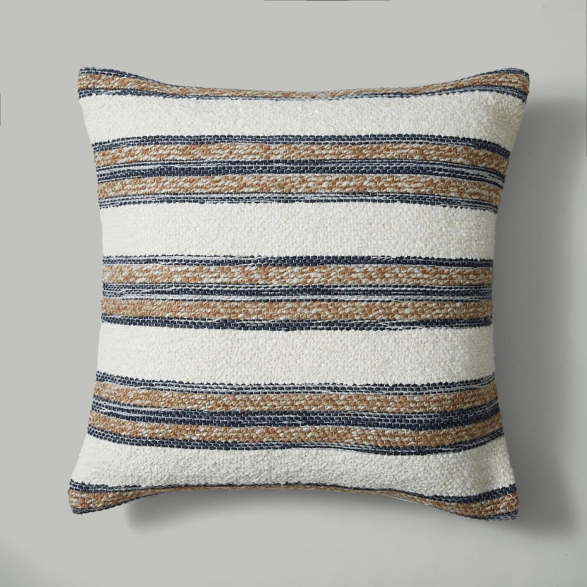 * Made from polyester * 43cm x 43cm size * Machine washable * Polyester fibre filling Elevate your décor with the timeless charm of the Woven Stripe Ivory Square Cushion. This 43cm x 43cm cushion is crafted from polyester and showcases a classic woven stripe pattern. It’s machine washable, filled with cosy polyester fibre, and designed with a secure zipper closure.