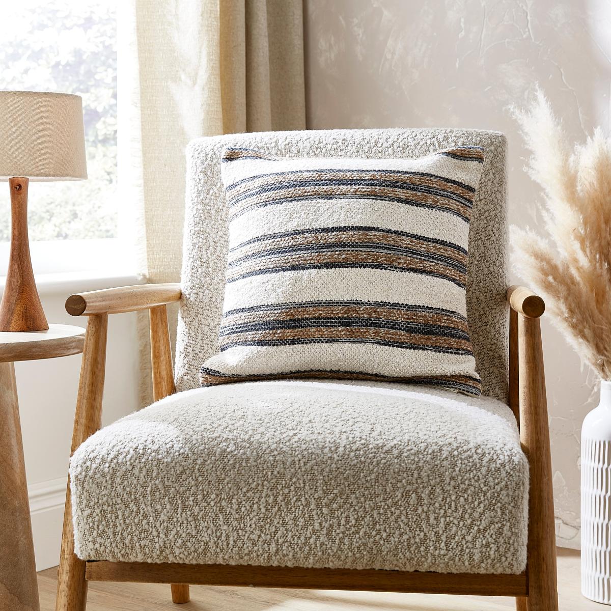 I love this cushion for adding subtle texture and pattern to a variety of interiors. Its woven stripe design in neutral tones makes it versatile, working particularly well in minimalist, Scandinavian, or rustic schemes. It's ideal for layering on sofas or armchairs to inject a touch of interest without overwhelming the space. For styling tips, pair it with other neutral or textured cushions to create a cosy, inviting look, or use it to add contrast in more vibrant, patterned settings. Its understated style and muted palette make it a practical and stylish choice for both modern and traditional interiors.