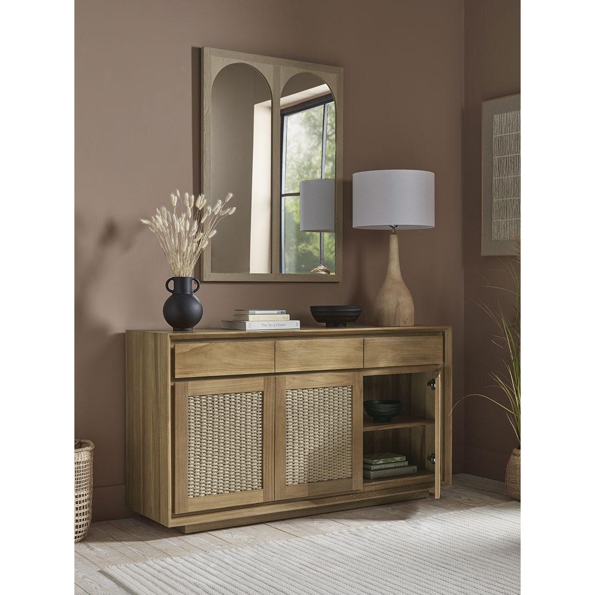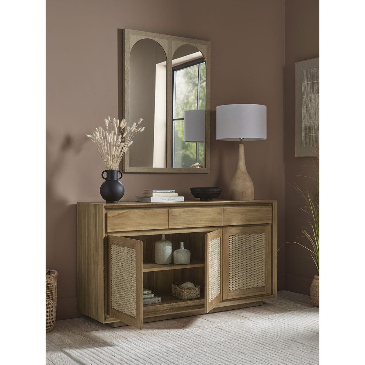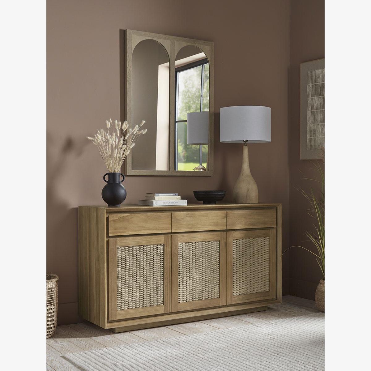 I’m a fan of the woven sideboard because it combines sturdy teak with a relaxed woven finish, giving plenty of storage without feeling too heavy in a room. It works well in coastal, Scandinavian or contemporary schemes where natural textures add warmth without clashing with clean lines. Styling-wise, balance its rectangular silhouette with a round mirror or a cluster of sculptural vases on top. Group books and ceramics in odd numbers, and tuck a soft rug or low planter in front to highlight its woven detail. Inside, use baskets or organisers to keep shelves tidy and accessible.