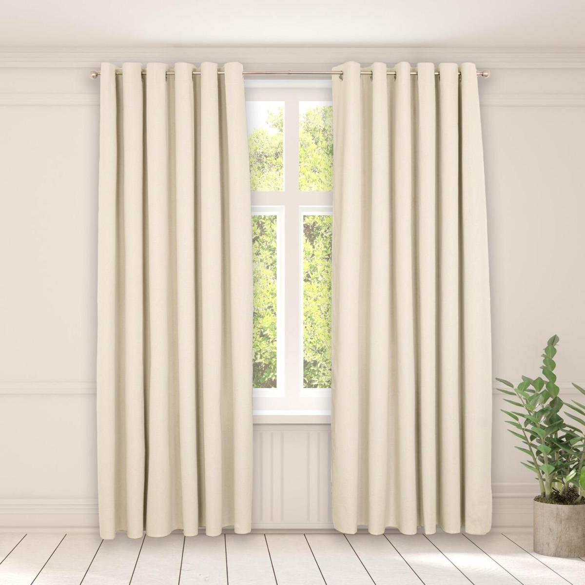 Woven Texture Pair of Eyelet Curtains - Natural / 46" wide x 72" drop