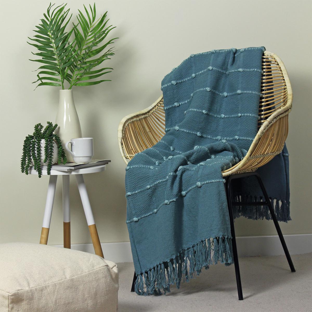 I love this throw for its versatile colour and textured design, which adds both warmth and visual interest to a space. It works particularly well in contemporary or coastal-inspired interiors, where its slate blue hue complements neutral palettes or nautical accents. For styling tips, drape it casually over a sofa or armchair for an inviting feel, or fold it neatly at the foot of your bed to add a cosy layer. Because of its tactile weave and stripes, it also pairs beautifully with other textured textiles, such as velvet cushions or woven baskets, to create a layered, styled look. It's a practical accessory for seasonal switches, adding comfort without bulk.