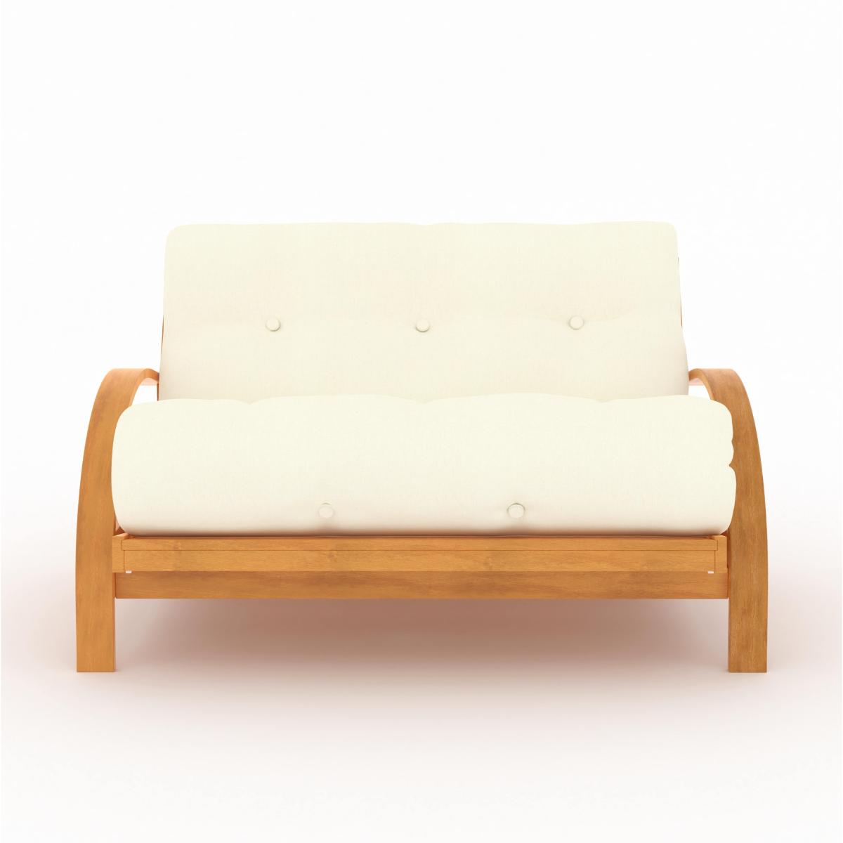 This sofa bed is designed to meet the demands of modern living, offering a versatile solution for any home. Its clever fold-out mechanism effortlessly transforms it from a stylish daytime lounger into a comfortable sleep space, ensuring you make the most of your living area without compromising on comfort. The Small Double Futon features wooden armrests that add a touch of elegance to its overall aesthetic. Whether you're relaxing during the day or accommodating overnight guests, this futon offers the utmost convenience with its easy-to-use fold-out mechanism. Crafted with quality materials and attention to detail, this Small Double Futon promises durability and long-lasting appeal. The contemporary design allows it to seamlessly blend into any modern interior, while its small double size makes it ideal for smaller spaces, spare rooms, or cosy studio apartments.