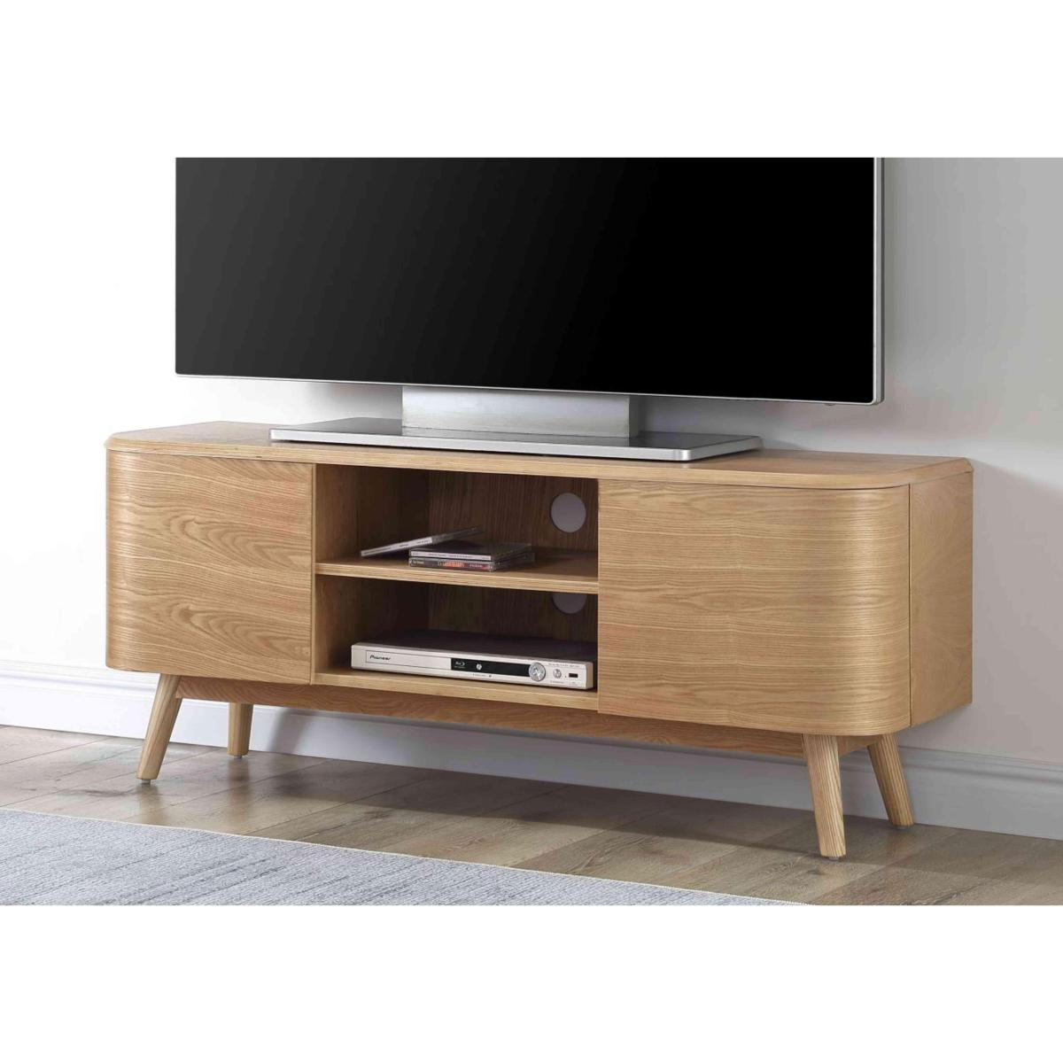 Beautifully fluid design, effortless functionality – it all comes together in our well-crafted Wren living room furniture collection. Showcasing bentwood curves, authentically achieved through the time honoured technique of steaming and then moulding wood veneer, the Wren range includes a TV stand, living room tables and a wall unit. With more than a hint of mid-century style in the pale oak finish and splayed legs, these pieces offer useful extra storage space in the most stylish way possible. The Wren collection is only available online. With its bentwood curves, pale oak veneer finish, splayed legs and roomy media storage, this stylish TV combines craftsmanship with thoughtful design. Why you'll love it Mid-century modern TV unit with lovely bentwood curves. Real oak veneer has a light-toned finish. Authentically crafted – the wood is steamed and then shaped. Soft-closing handle-free doors keep the look beautifully simple. Cable management system keeps leads neat and tidy. A Furniture Village online exclusive. This TV unit is part of the Wren range. What you need to know Delivered to you flat-packed. Assembly required. 2 cupboards each have 1 adjustable shelf. No two pieces of veneer are the same. You may see variations in colour and woodgrain. Avoid placing in direct sunlight or close to a heat source. Wipe clean with a damp cloth, and dry with a soft duster. Do not use abrasive cleaning products. We recommend using coasters or placemats at all times. The Wren range also includes living room occasional tables and a wall shelf.