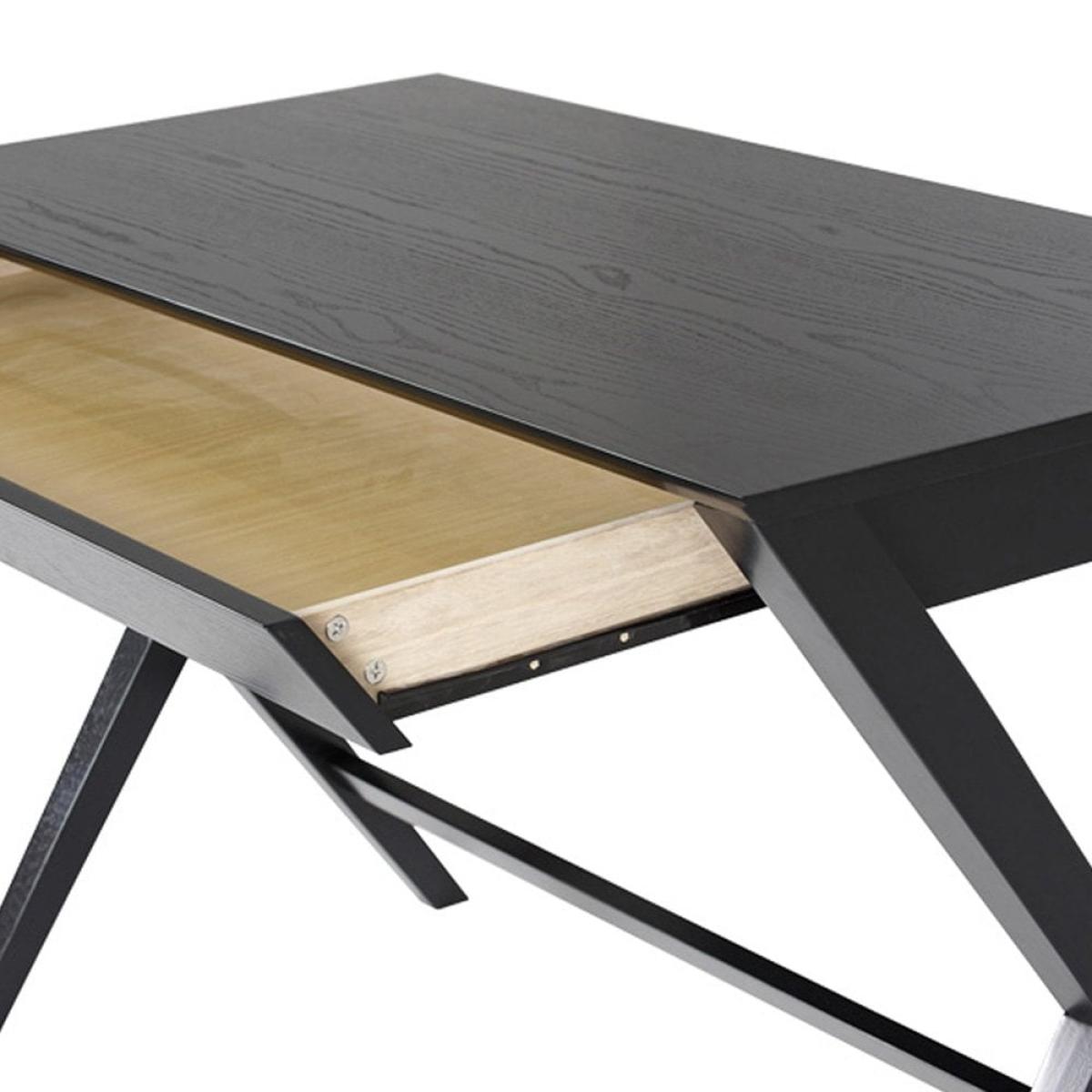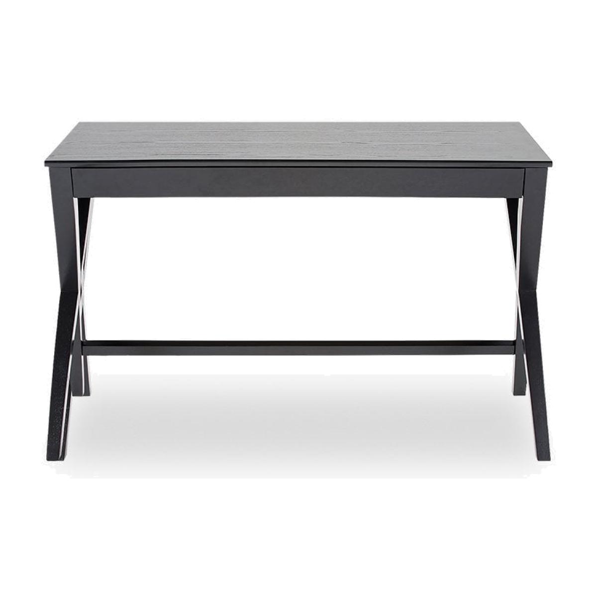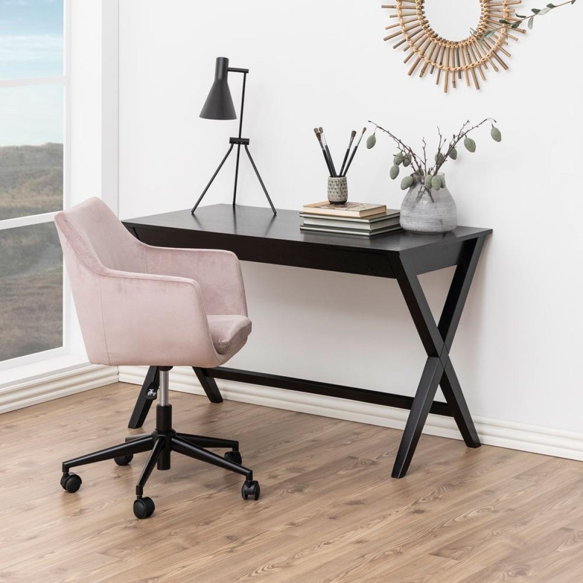 The Writex all-black wooden desk is minimalist, contemporary, and practical. The drawer stretches across the length of desk with reinforced criss-cross legs that is both sturdy and stylish. We love the sleek one tone finish that slots into any home office decor.