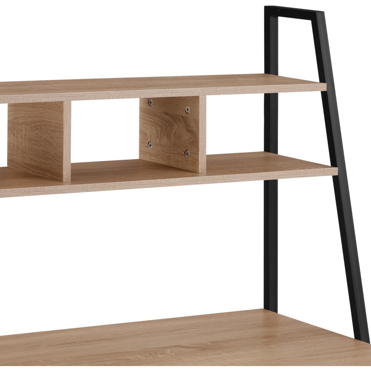 Give your home more personality with the striking Exeter desk from tectake. Designed for functionality, it offers plenty of versatility, though its simple work surface, practical storage compartments and overhead shelf - giving more options than other desks throughout the day. Plus, the durable materials and adjustable soft feet make the furniture suitable for any home office. The contrast of steel and wood creates the characteristic industrial look, with the appealing oak grain creating a harmonious contrast. The minimalist design and the open construction give the narrow table an attractive lightness and help it fit into any corner of your home or office.