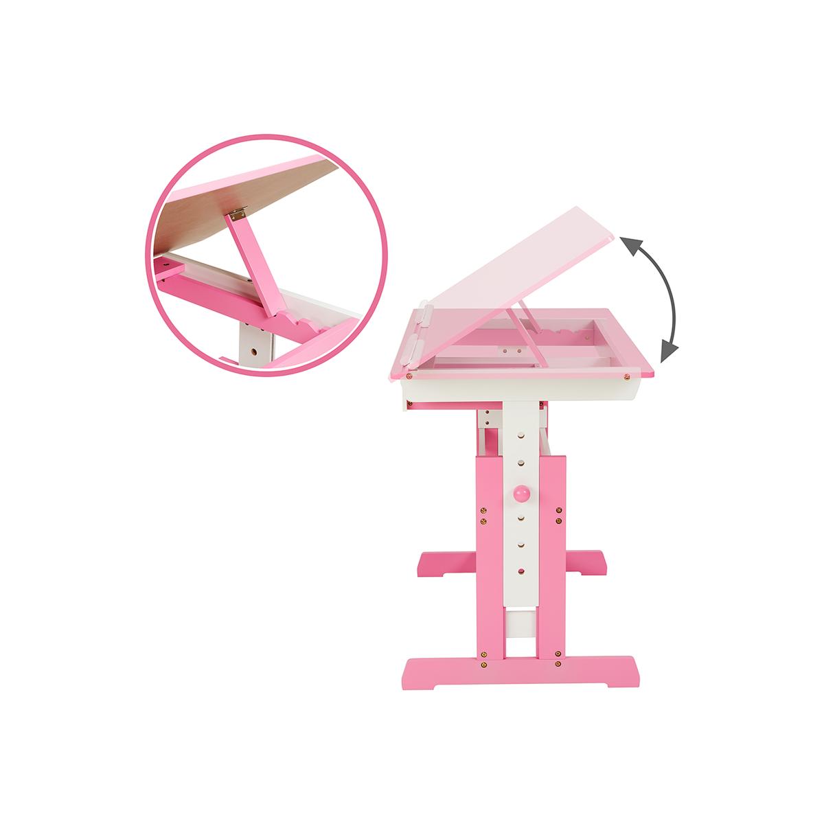 Homework will be fun to finish at this tectake writing desk. A drawer provides storage space for all your study materials and thanks to its height adjustability it can grow with your child and promises a successful start to school. The tabletop can be tilted and features two removable stop bars to prevent any work materials from slipping off the table. A safe round finish on the desks edges helps prevent any accidents and injuries. These children's desks by tectake are a perfect addition to any home with a young child taking their first steps into education. Plus the rounded corners reduce the risk of injury and round off the well thought-out design of the desk. Whether in your childrens bedroom or in the living room, this desk is sure to support your young ones in their education.