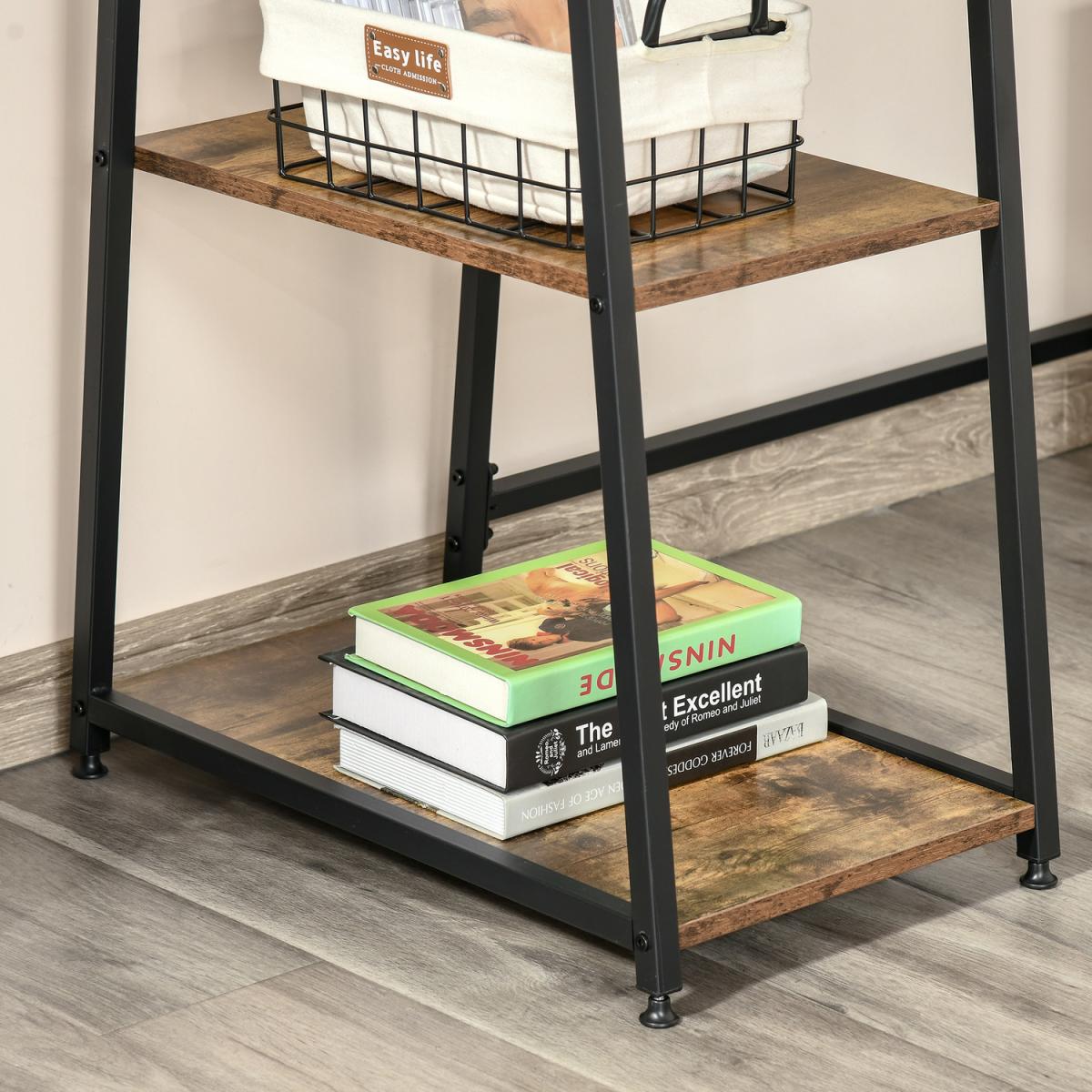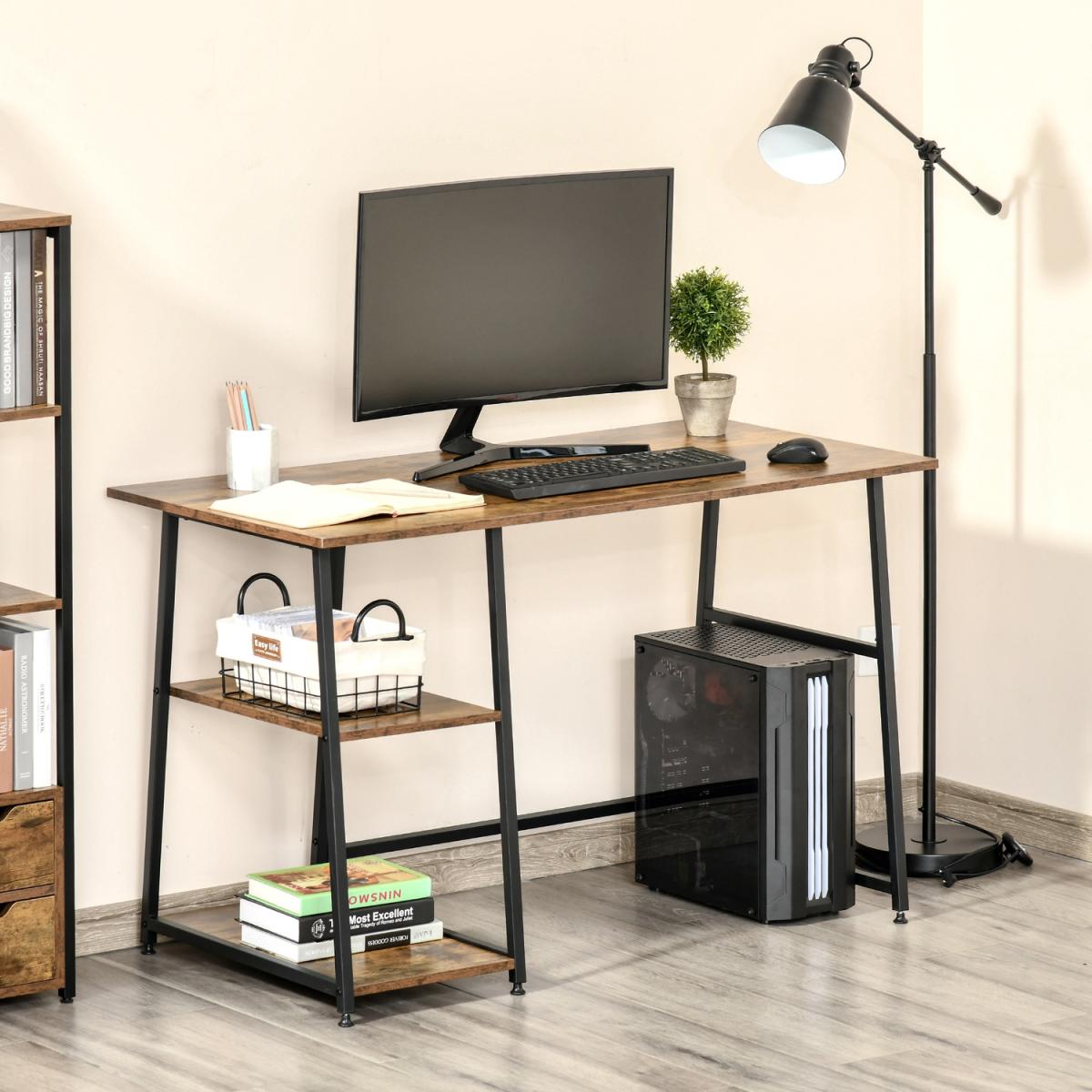 Writing Desk Working Station with 2 Shelves Steel Frame - Rustic brown