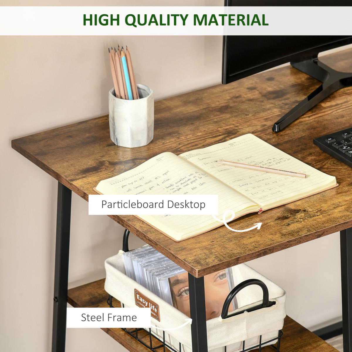 This HOMCOM desk with a stable structure works well in any decor style. Made from solid E1 class particleboard with a metal frame, this desk is solid for long-lasting use. Beautiful wood grain surface desktop and two storage shelves offer enough space to organize your office's supplies. The simple but concise design makes it fits all kinds of places, matches the rest of your room furniture wherever in your office or home. Provide better services for you, always bring you a better living experience.