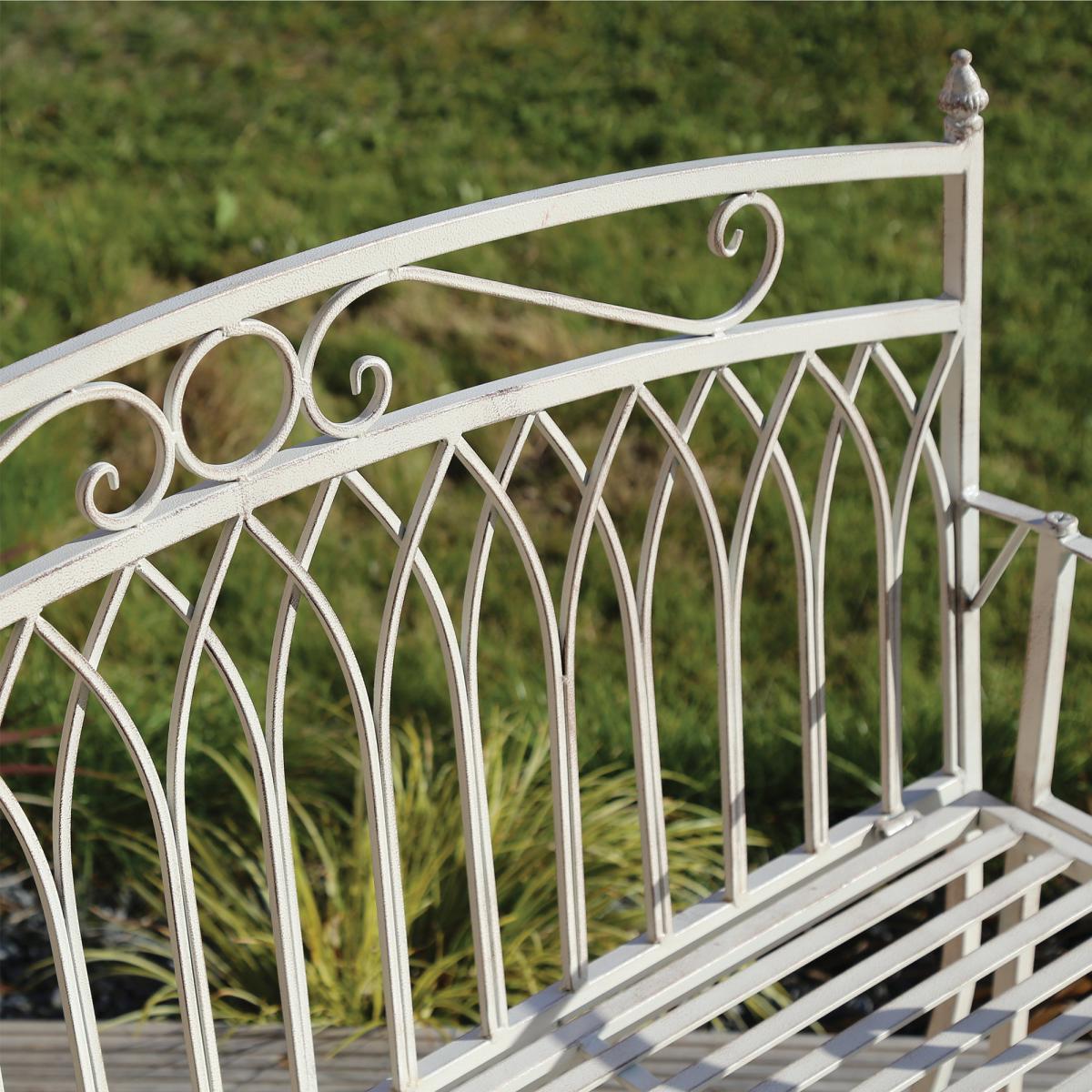 Perfect for any garden, this white wrought iron bench can seat approximately 2-3 people and is therefore perfect for hosting friends and family this summer. We recommend that you paint this bench with a rust-proof coating and then apply a powder coat. We recommend that you cover this product whilst it is not in use.