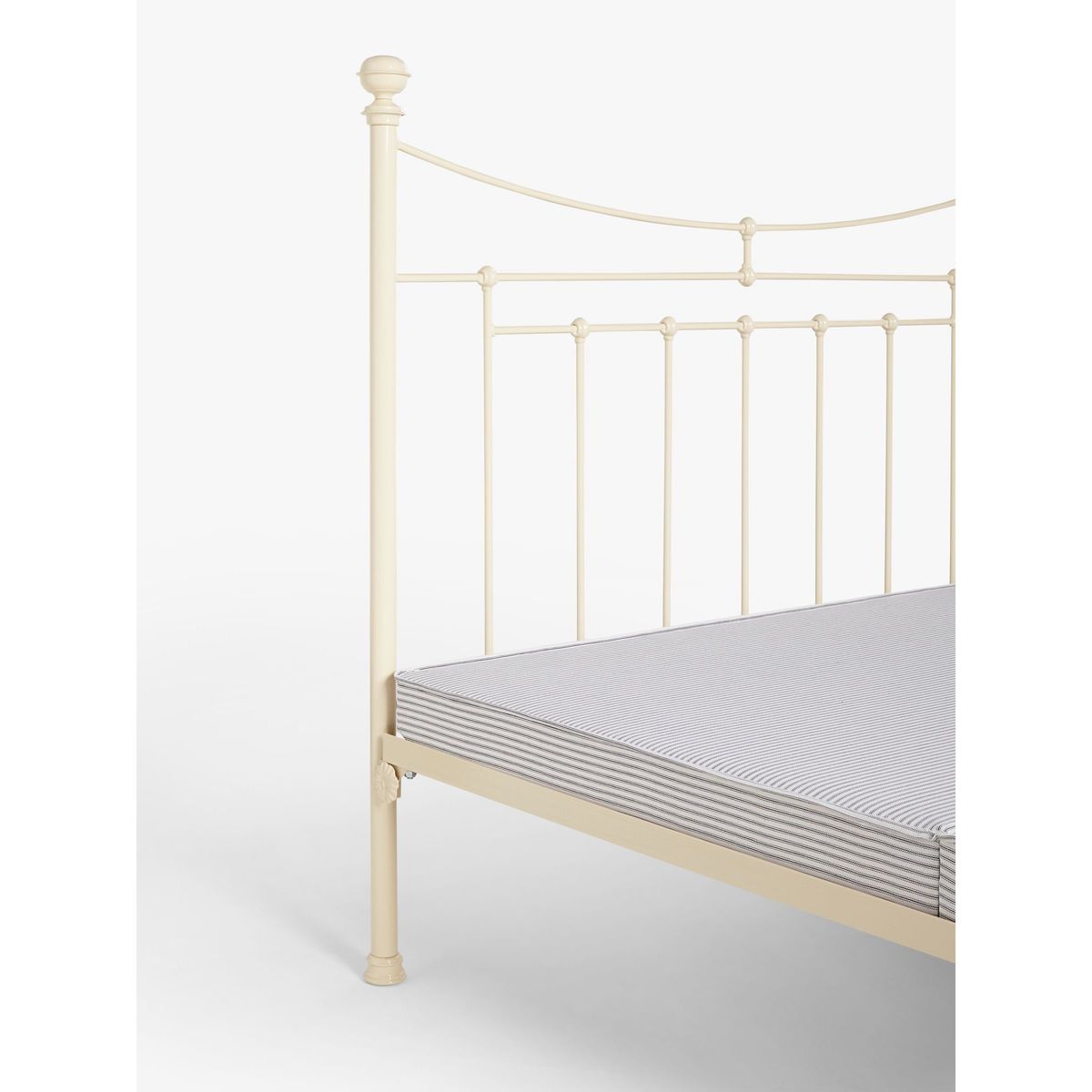 A timeless classic, the Lily bed frame from Wrought Iron And Brass Bed Co. balances the clean-lines of its slatted head and tailboard with downward, sweeping curve detailing. Made in the UK from solid wrought iron, its elegant frame references traditional Victorian design thanks to added cast iron fittings and colour-coordinating finials. It's also been coated in a high-quality powder-coated finish that acts as a protective layer. Made from Scandinavian pine wood, solid slats provide a firmer base for your mattress. This bed frame will become the centrepiece of your bedroom. Want to see it first? You may want to see and get a feel for the furniture in one of our shops before ordering. We'll be able to tell you where the range you'd like to view is on display.