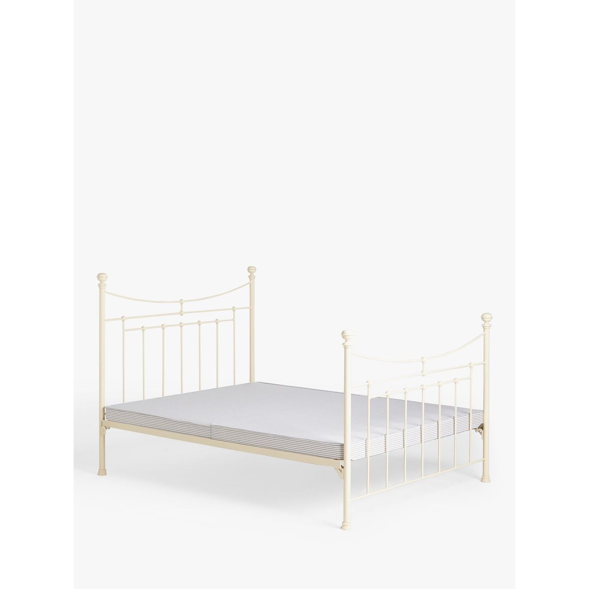 A timeless classic, the Lily bed frame from Wrought Iron And Brass Bed Co. balances the clean-lines of its slatted head and tailboard with downward, sweeping curve detailing. Made in the UK from solid wrought iron, its elegant frame references traditional Victorian design thanks to added cast iron fittings and colour-coordinating finials. This frame also features a platform top, non-sprung base, providing a softer foundation for your mattress. Want to see it first? You may want to see and get a feel for the furniture in one of our shops before ordering. We'll be able to tell you where the range you'd like to view is on display.