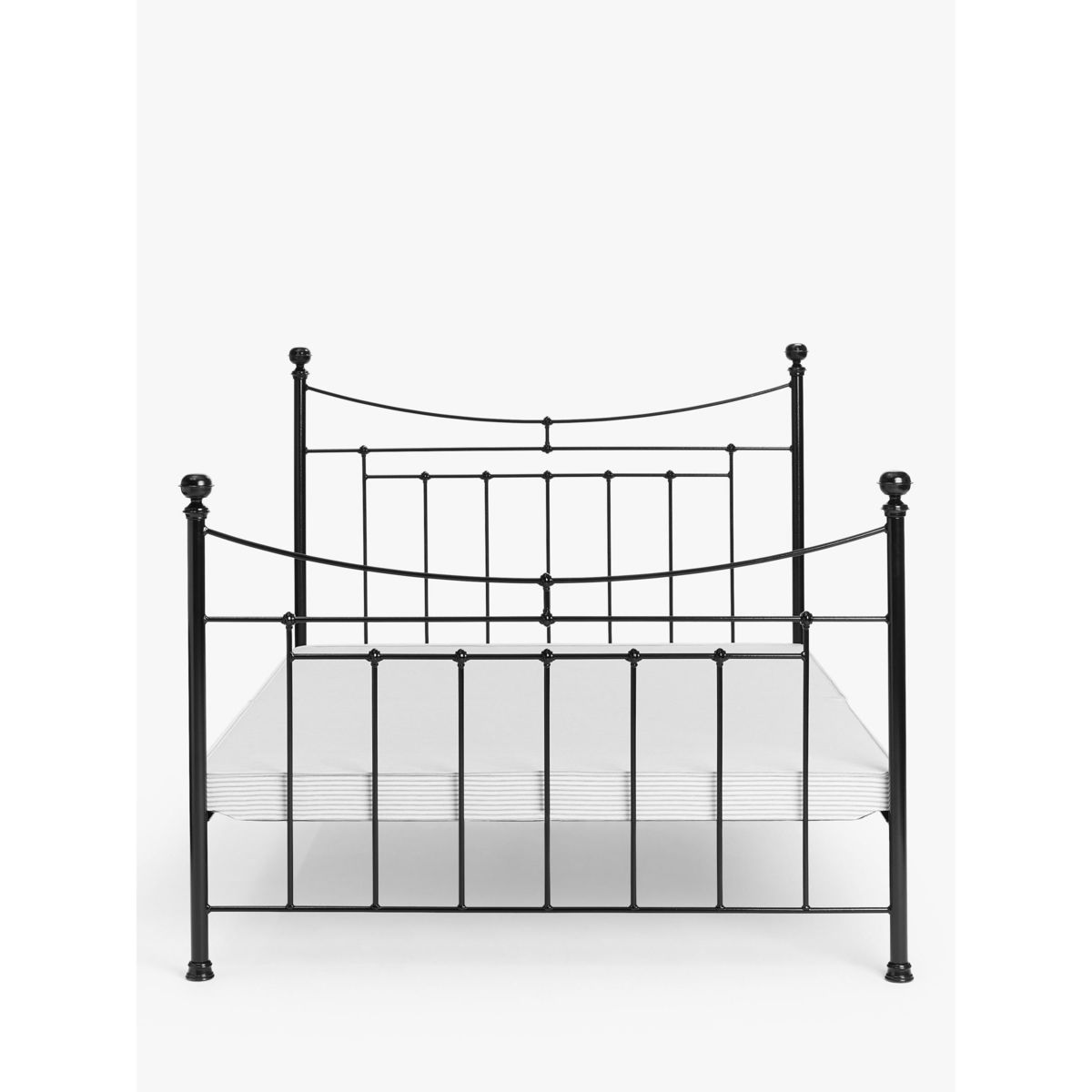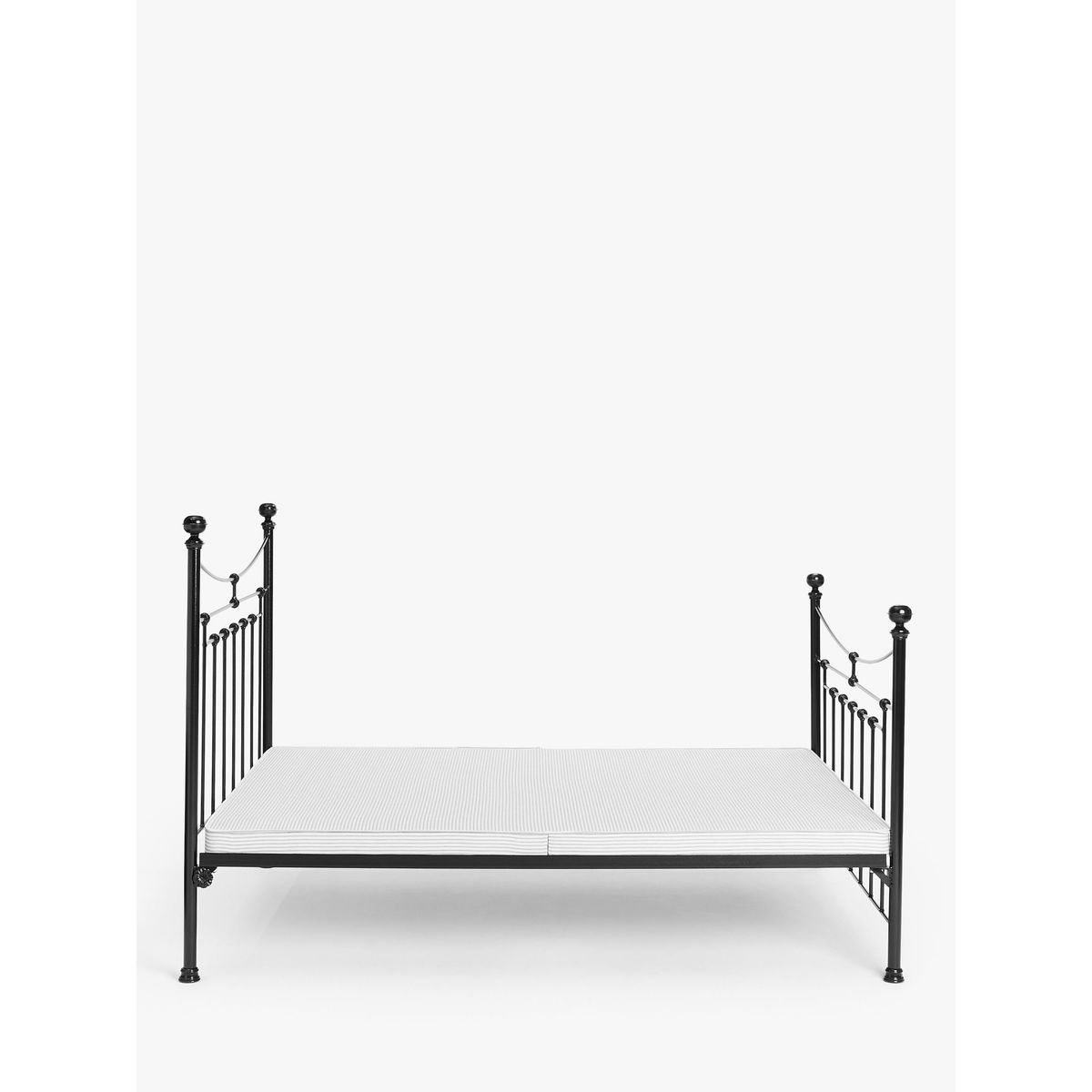 A timeless classic, the Lily bed frame from Wrought Iron And Brass Bed Co. balances the clean-lines of its slatted head and tailboard with downward, sweeping curve detailing. Made in the UK from solid wrought iron, its elegant frame references traditional Victorian design thanks to added cast iron fittings and colour-coordinating finials. This frame also features a platform top, non-sprung base, providing a softer foundation for your mattress. Want to see it first? You may want to see and get a feel for the furniture in one of our shops before ordering. We'll be able to tell you where the range you'd like to view is on display.