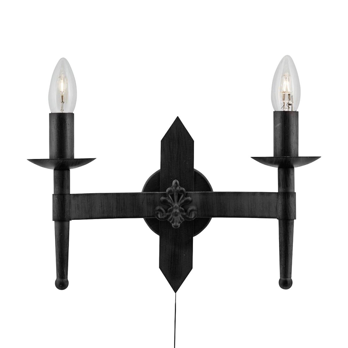 This 2 light wall bracket in black wrought iron is inspired by medieval chandeliers in castles from many centuries ago. Designed to light up your living spaces beautifully, the wrought iron effect fitting is old English style. The two candle tube lamps cast gentle lighting across the walls, so you can give your home a traditional look and cosy feel. Product Dimensions: 21.5x34cm Bulb Type: E14 Maximum Wattage: 40 WBulb Included?:No. Number of Bulbs Required: 2Cable/. Switch Info: Black [pull] switch. This product will be dispatched by one of our trusted suppliers. You’ll be contacted by their selected courier about your delivery. SEARC01