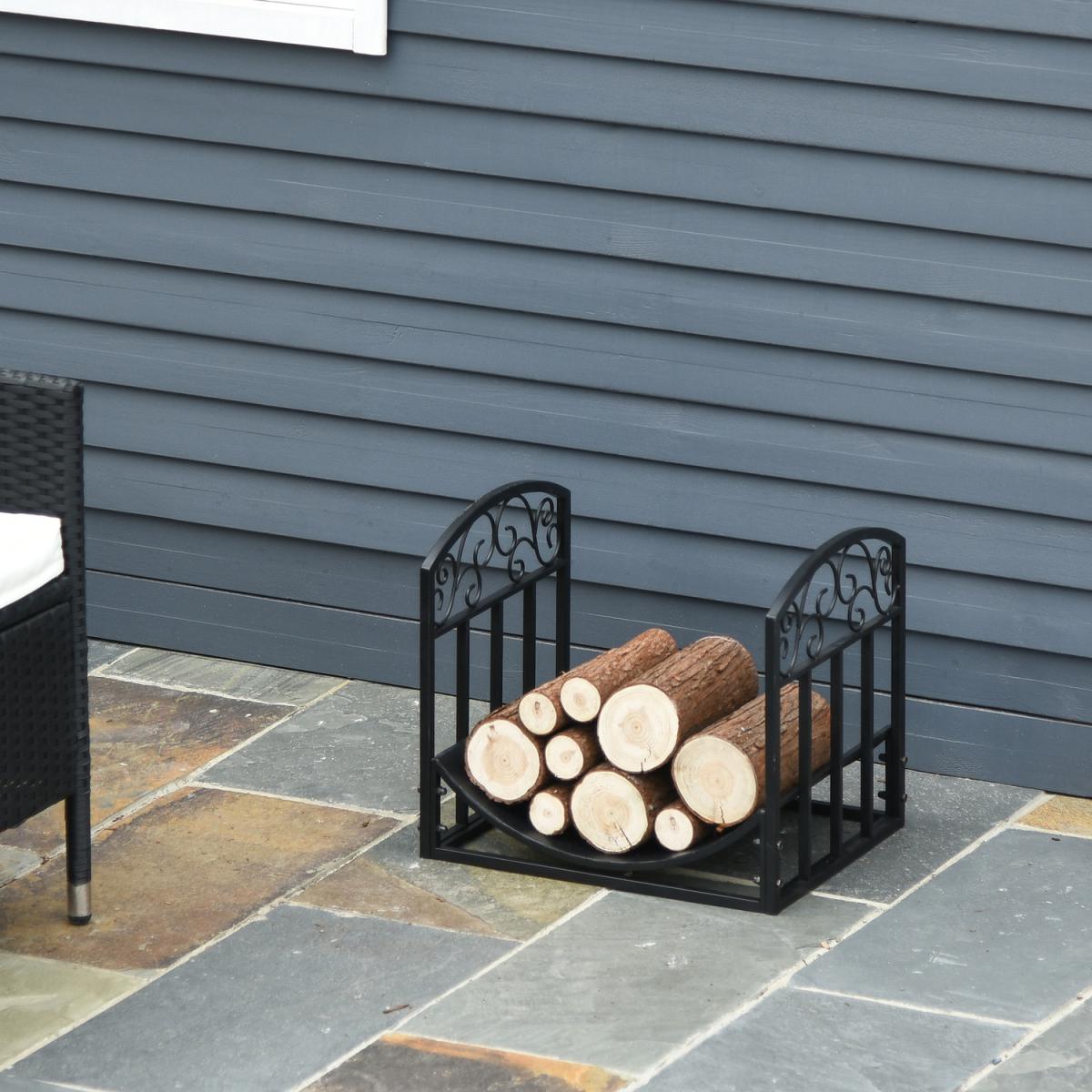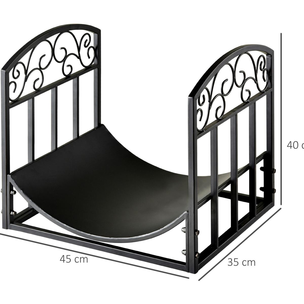 Let the smooth curved design and side scrolling of this firewood rack, from Outsunny, hold your wood together in effortless elegance. The structure is made from wrought iron for superb strength both indoors and outdoors, with a powder coating for extra strength. The outer base is formed into a rectangular shape: directly touching the floor so it stays completely stable. Inside, the wood holder is placed, which is smoothly curved to hold the wood compactly and securely together, as well as keeping it elevated and protected from the floor.