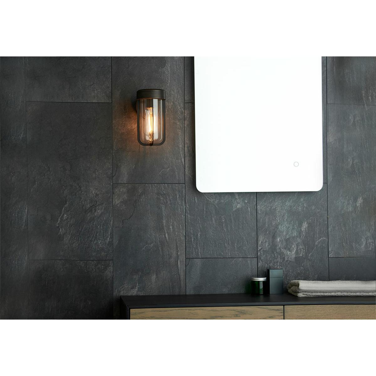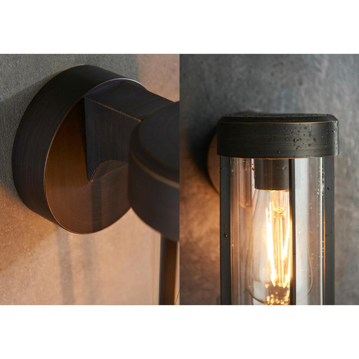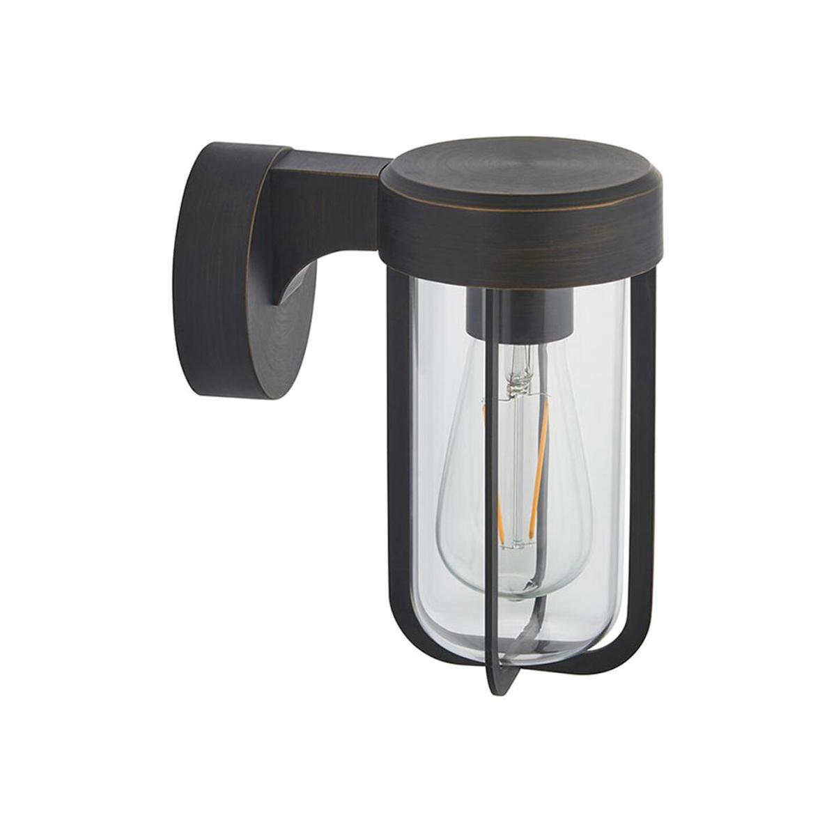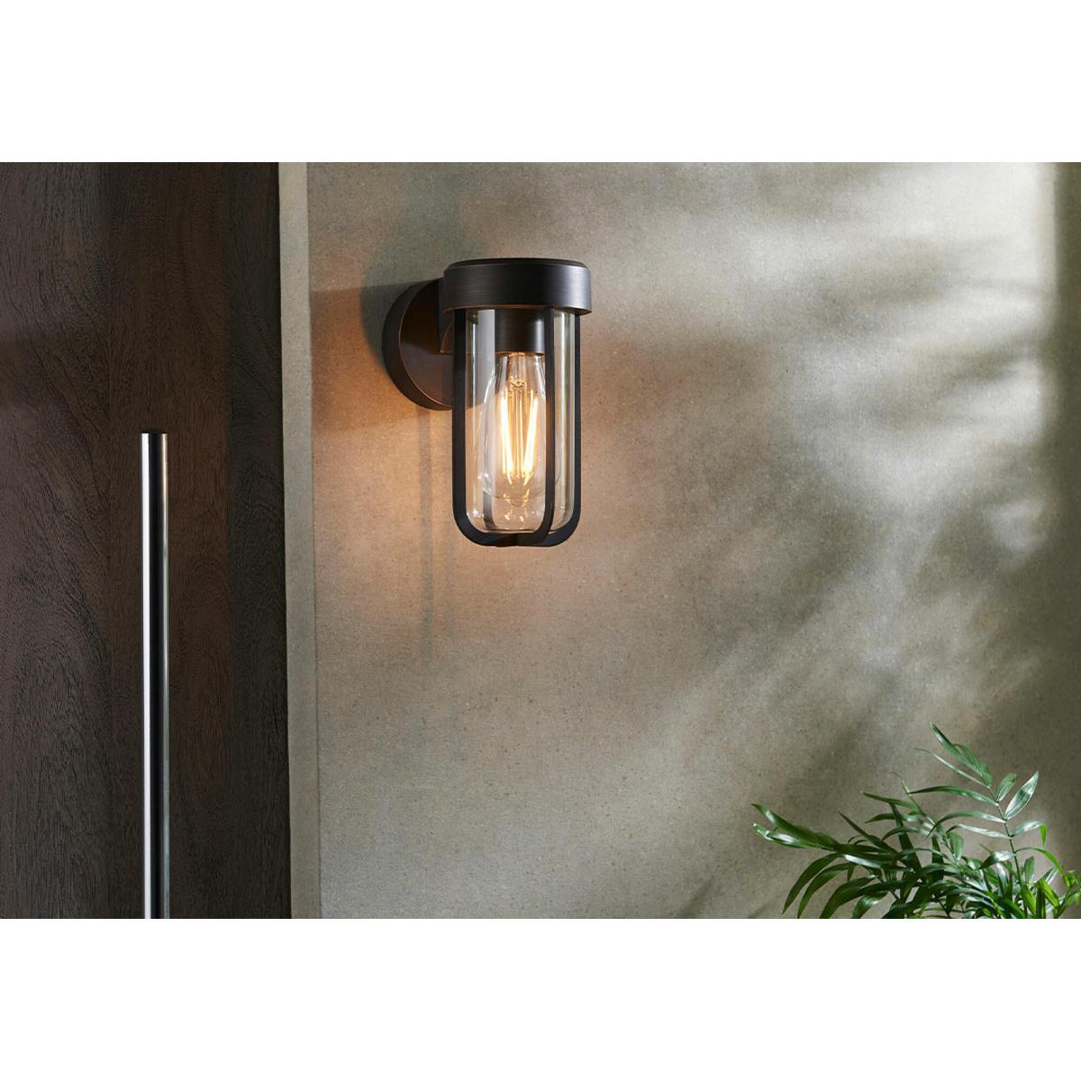 Introducing the Wyatt range; a sleek range of industrial-inspired designer wall lights that will modernize your space in an understated yet distinguishable way. IP44 rated, they are suitable for bathroom and exterior use as they are resistant to water splashes and moisture build up. Finished in a dark bronze, this light uses a clear glass case to enclose a lampholder for an E27 filament lamp of your choice - a contemporary design that will work with a range of styles. Wyatt is also available in a number of other fashionable finishes, including brushed silver, brushed gold and matt black.