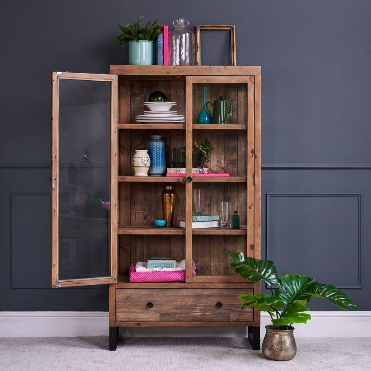 I love this piece for its authentic reclaimed wood finish, which adds warmth and character to a variety of interiors. It works particularly well in rustic, farmhouse, or industrial settings but can also bring a contrasting natural element to modern or minimalist spaces. Practical styling tips include using the shelves for curated display of ceramics, glassware, or vintage items to highlight its charm. Pair it with greenery or colourful accessories to add personality, and consider incorporating lighting inside to showcase your favourite pieces. Its versatile size and timeless appeal make it a great storage solution that doubles as a statement piece.