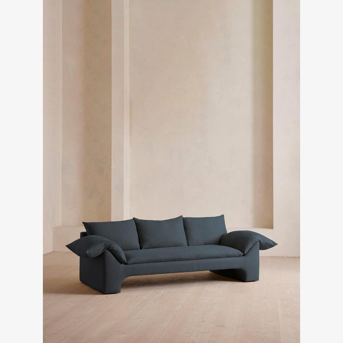 Wyatt Three Seater Sofa, Linen, Prussian Blue