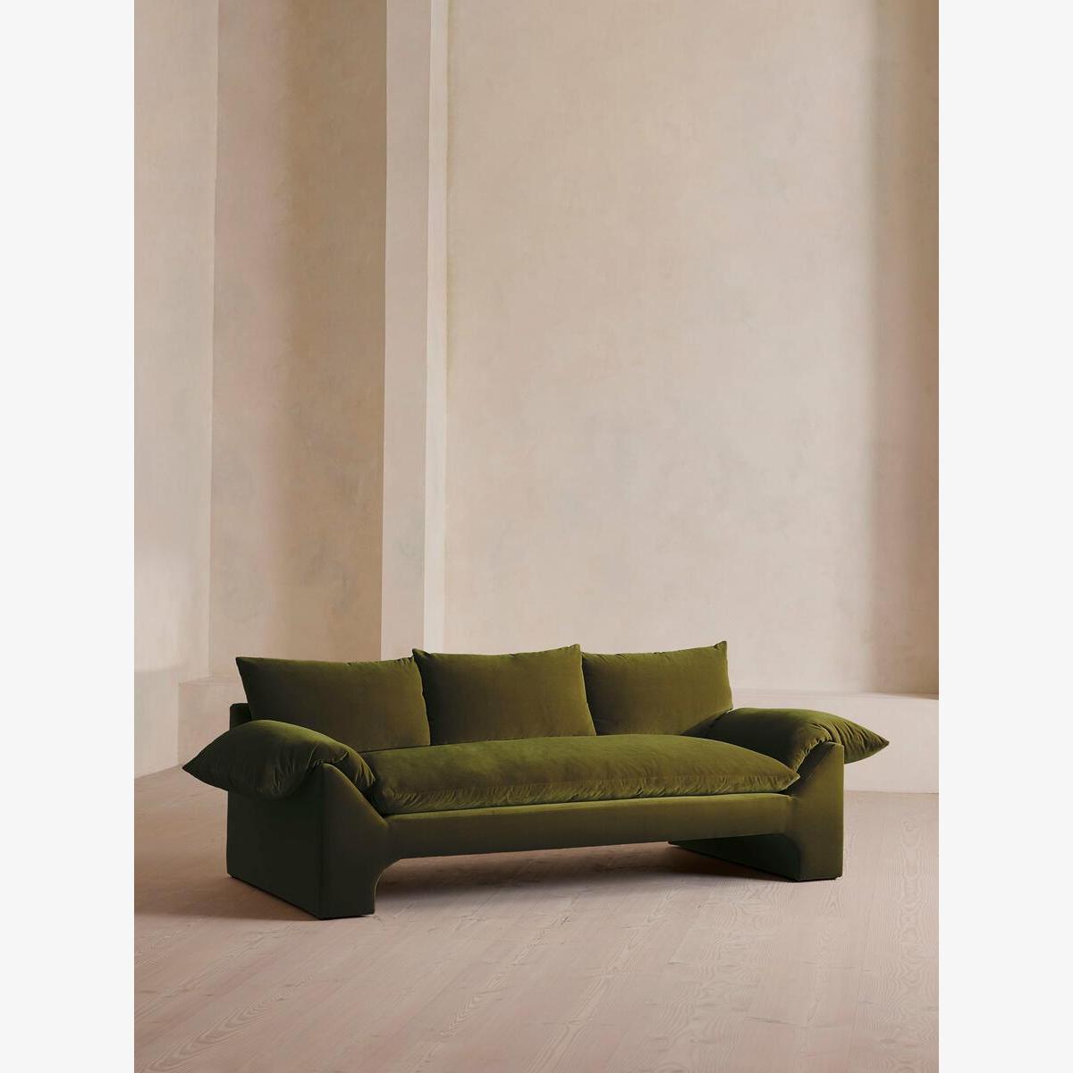 Wyatt Three Seater Sofa, Velvet, Olive