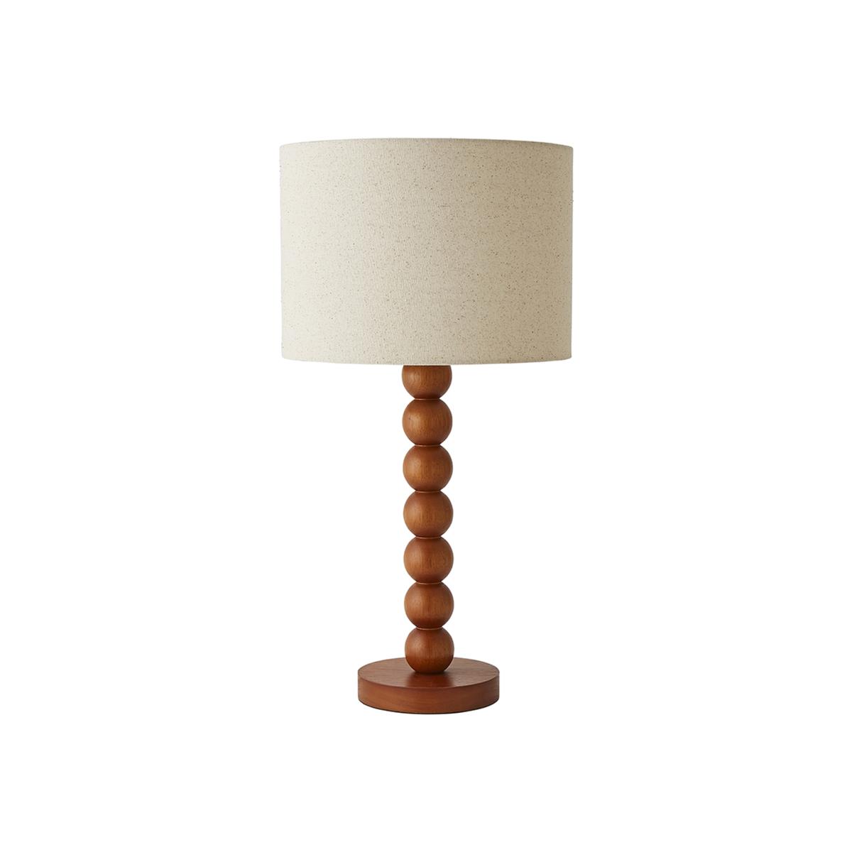 Wyatt Walnut Bobble Wood Table Lamp with Tall Linen Shade - Brown