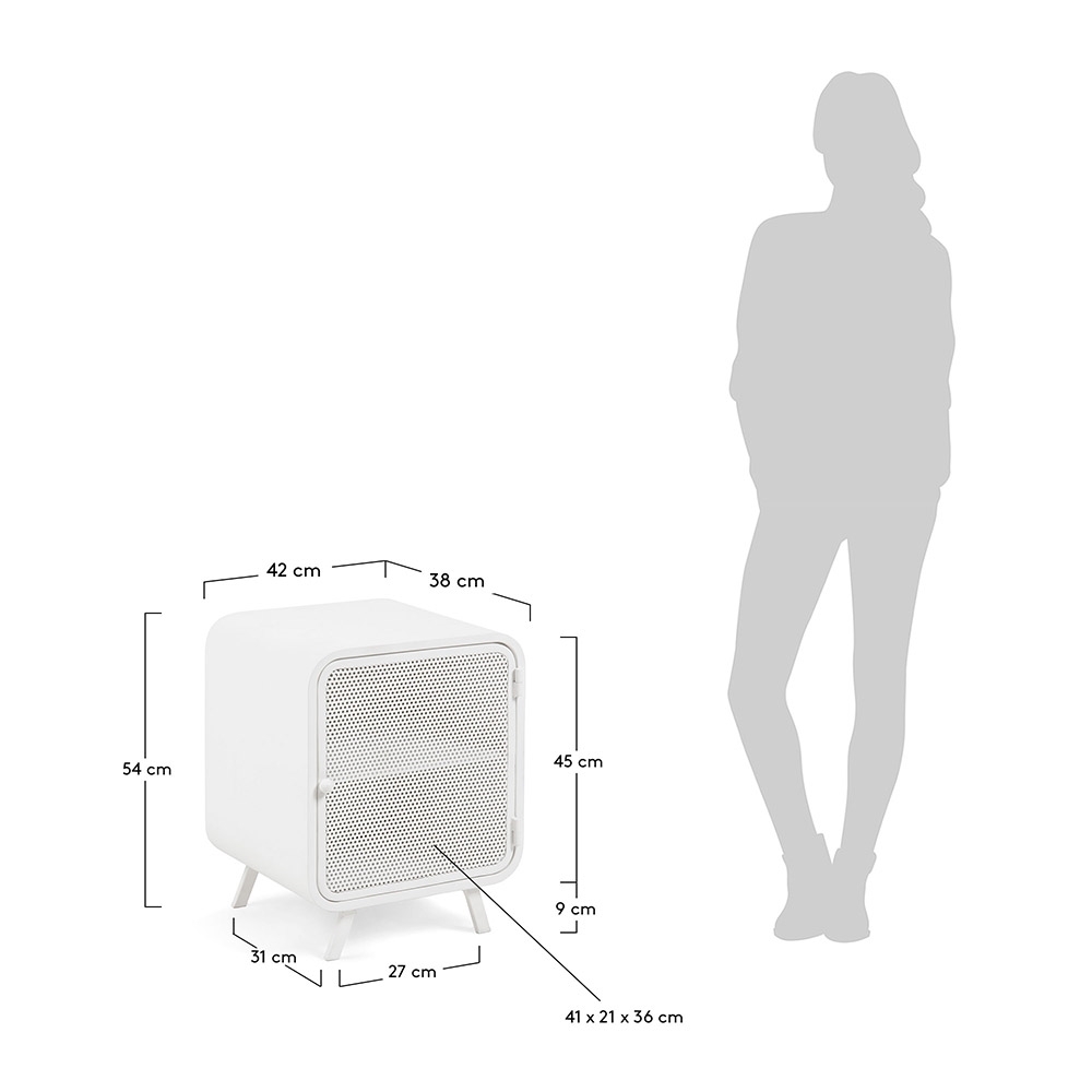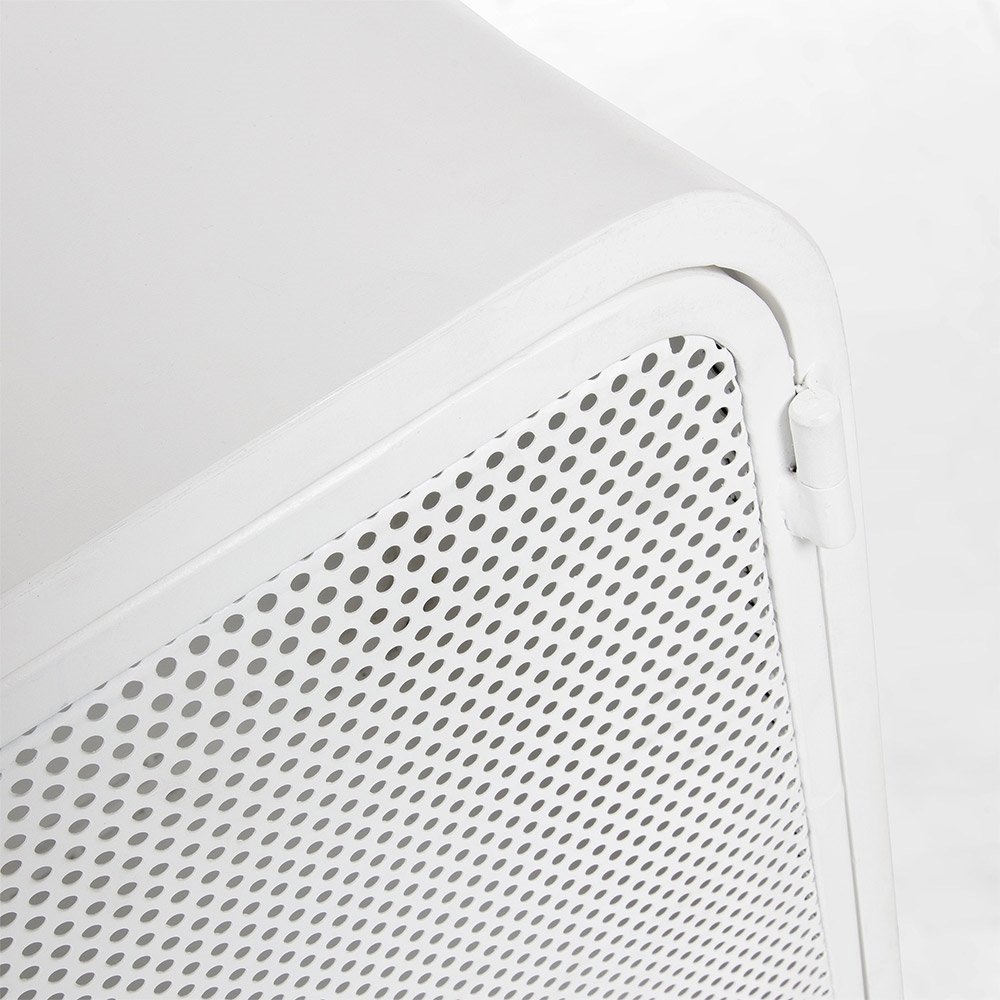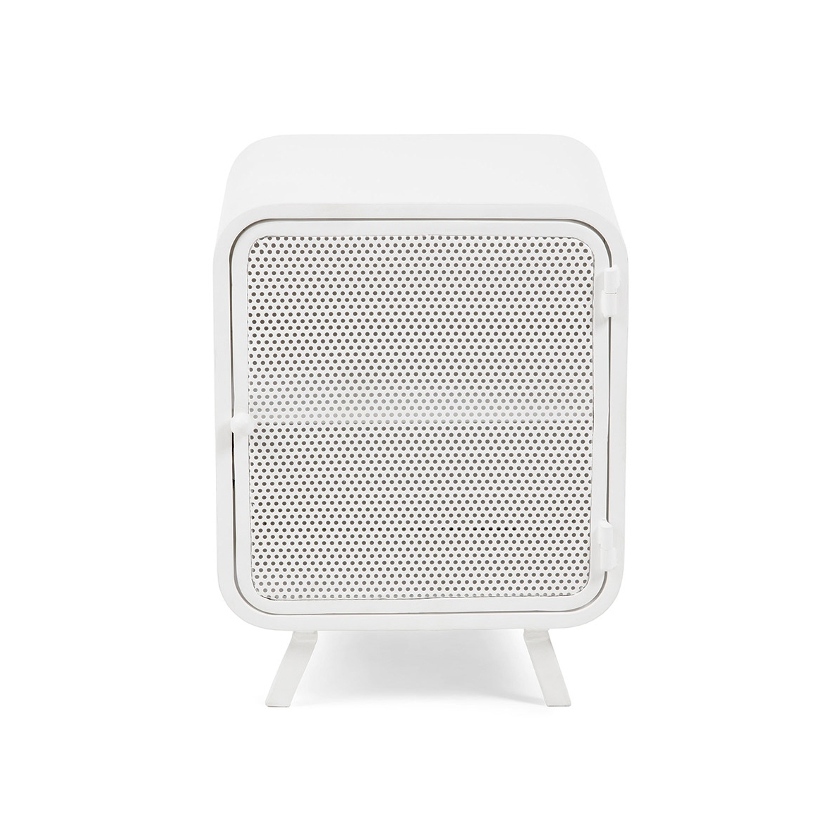 Keep your nighttime essentials close to hand with the Wyatt White Metal Bedside Table, the perfect finishing touch to your bedroom. Manufactured from steel in a matte white finish, the grate effect of the door adds a contemporary but industrial look. The top is spacious enough for a lamp and that much-needed alarm clock whilst the cupboard is great for keeping all those bits and bobs and the inclusion of a shelf means you can organise them. Books on one shelf, snacks on the other!