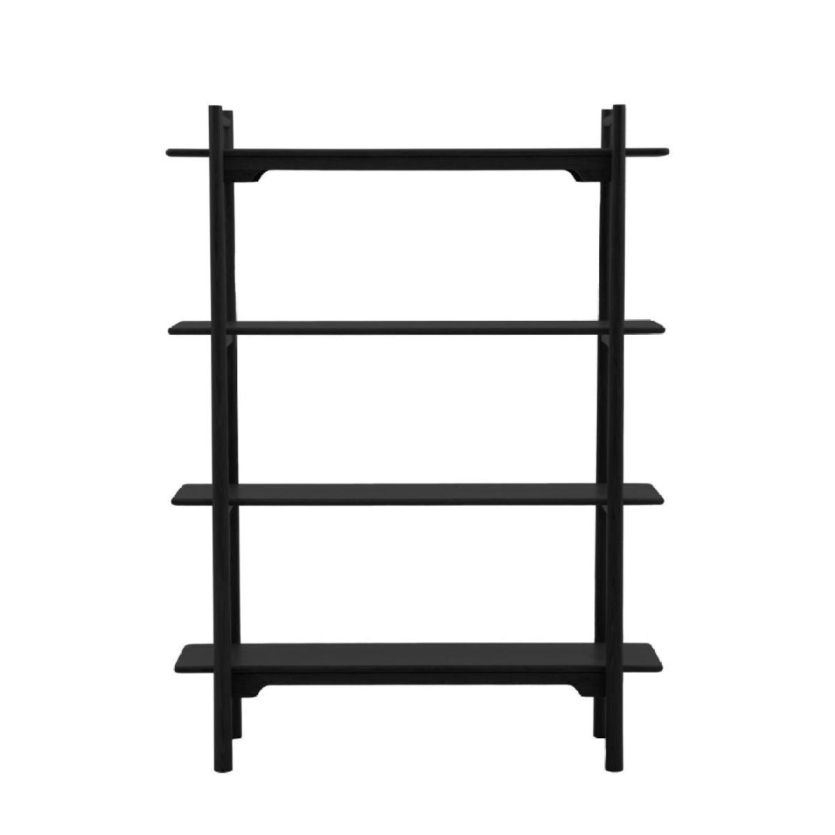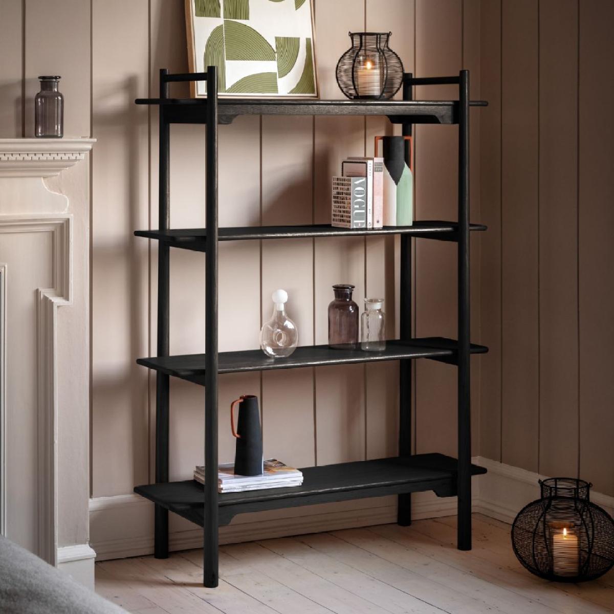 Wycombe black oak veneered open display unit, featuring four spacious shelves. Showcase your style with the Wycombe black display unit, a perfect blend of Nordic-inspired design and modern functionality. This tall unit features four spacious shelves, ideal for displaying books, ornaments and cherished keepsakes. Its black oak veneered shelves are paired with a sturdy solid black oak frame, creating a sleek and timeless look. The stylishly tapered legs add a touch of refinement, ensuring this piece stands out as both functional and decorative. Whether in your living room, office or hallway, the Wycombe display unit brings effortless elegance and practicality to your space, making it an essential addition to any contemporary home. Wycombe black oak veneered open display unit, featuring four spacious shelves. Showcase your style with the Wycombe black display unit, a perfect blend of Nordic-inspired design and modern functionality. This tall unit features four spacious shelves, ideal for displaying books, ornaments and cherished keepsakes. Its black oak veneered shelves are paired with a sturdy solid black oak frame, creating a sleek and timeless look. The stylishly tapered legs add a touch of refinement, ensuring this piece stands out as both functional and decorative. Whether in your living room, office or hallway, the Wycombe display unit brings effortless elegance and practicality to your space, making it an essential addition to any contemporary home.