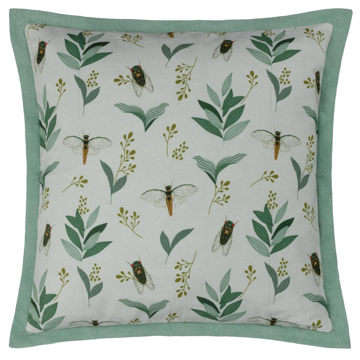 * Made from cotton * Botanical design * Square shape Inspired by nature, the Wylder Lace Wing Cushion Cover showcases a delicate print of flying insects pollinating fresh florals in an on-trend colour palette. The Oxford border and plain cotton reverse add a sophisticated finish, while the 100% cotton fabric offers a super-soft yet durable touch.