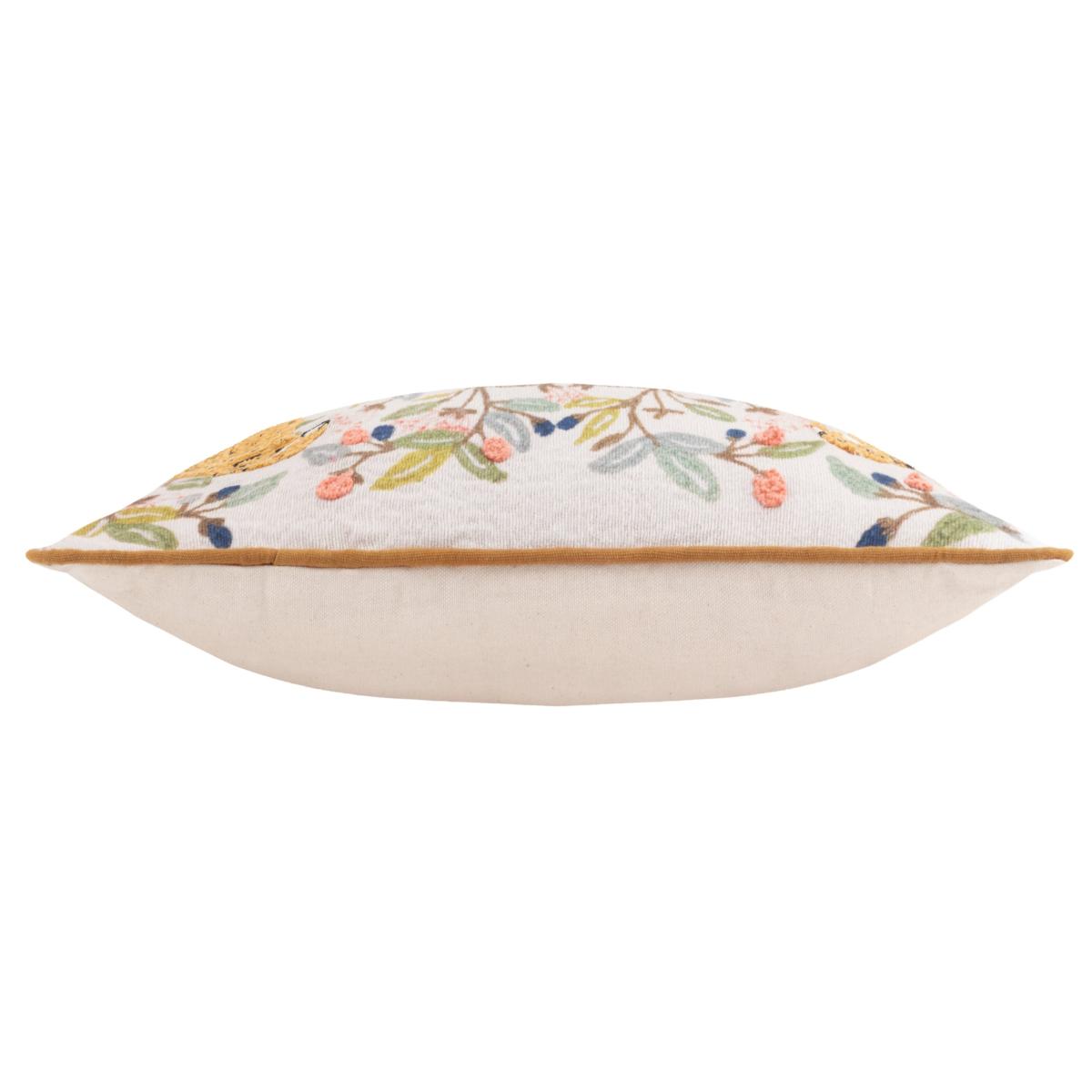 * Made from cotton * Cheetah design * Sponge clean * Rectangle shape Make a statement with the Wylder Mirrored Cheetah Cushion Cover, featuring a stunning hand-embroidered design of symmetrical cheetahs, framed by printed and embellished florals. A complementing cotton reverse, piped trim, and hidden zip closure enhance its refined look, while the 100% cotton fabric ensures a soft yet sturdy finish.