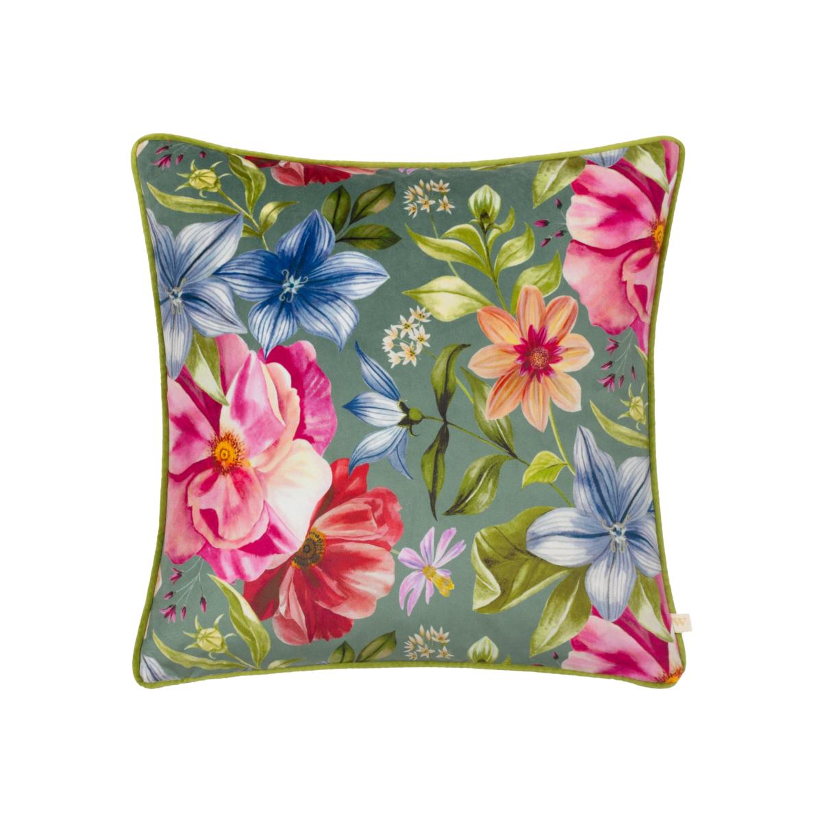 Wylder Nectar Garden Petunia Square Cushion Teal (Blue)