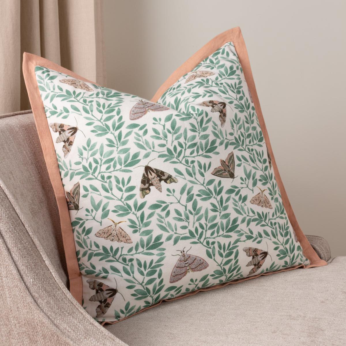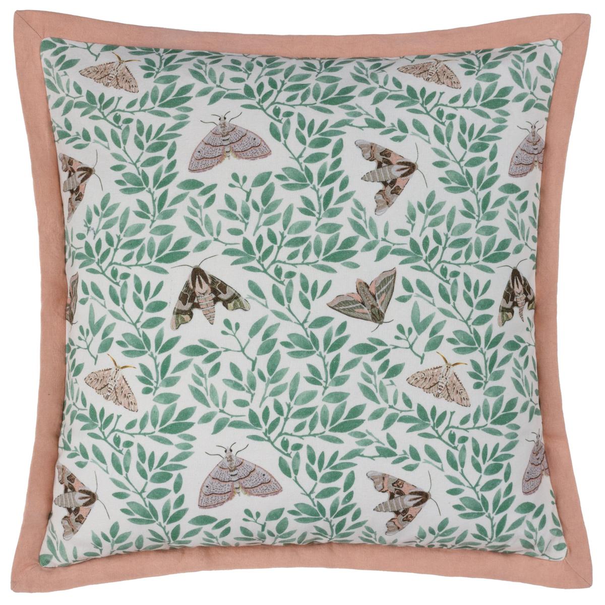 * Made from polyester * Botanical design * Square shape Bring a nature-inspired aesthetic to your décor with the Wylder Silk Moth Cushion Cover, featuring an enchanting print of moths fluttering among leafy branches. The Oxford edge trim and hidden zip fastening add a touch of elegance, while the 100% cotton fabric ensures a super-soft feel.