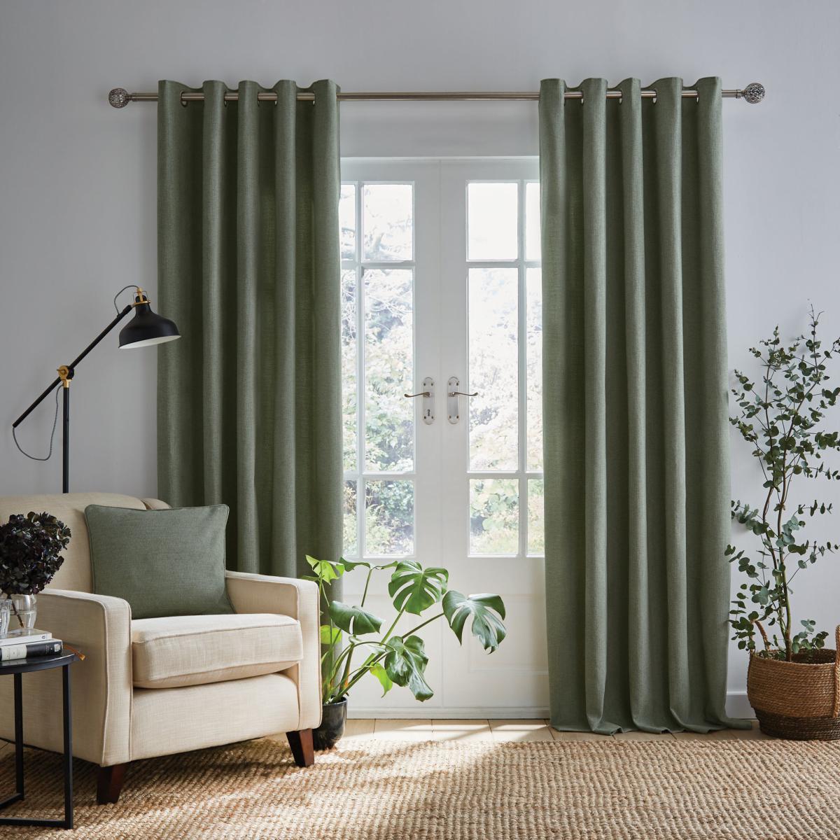 Crafted from sumptuously smooth chenille fabric for a soft textured finish, the stylish Wynter thermal curtains are perfect to complement a variety of decorative styles. Finished in a warm and inviting olive green colourway, these curtains feature a thermal coating and help to insulate your home through all seasons by blocking external heat in summer and prevent cool draughts in winter while providing added privacy. These versatile curtains come complete with a stylish and sophisticated eyelet header for easy installation and smooth movement across your curtain pole. Available in a selection of sizes to suit your requirements. A coordinating cushion is available to purchase separately. Please note: these curtains are sold as a pair. Professional cleaning in Hydrocarbon or equivalent recommended.