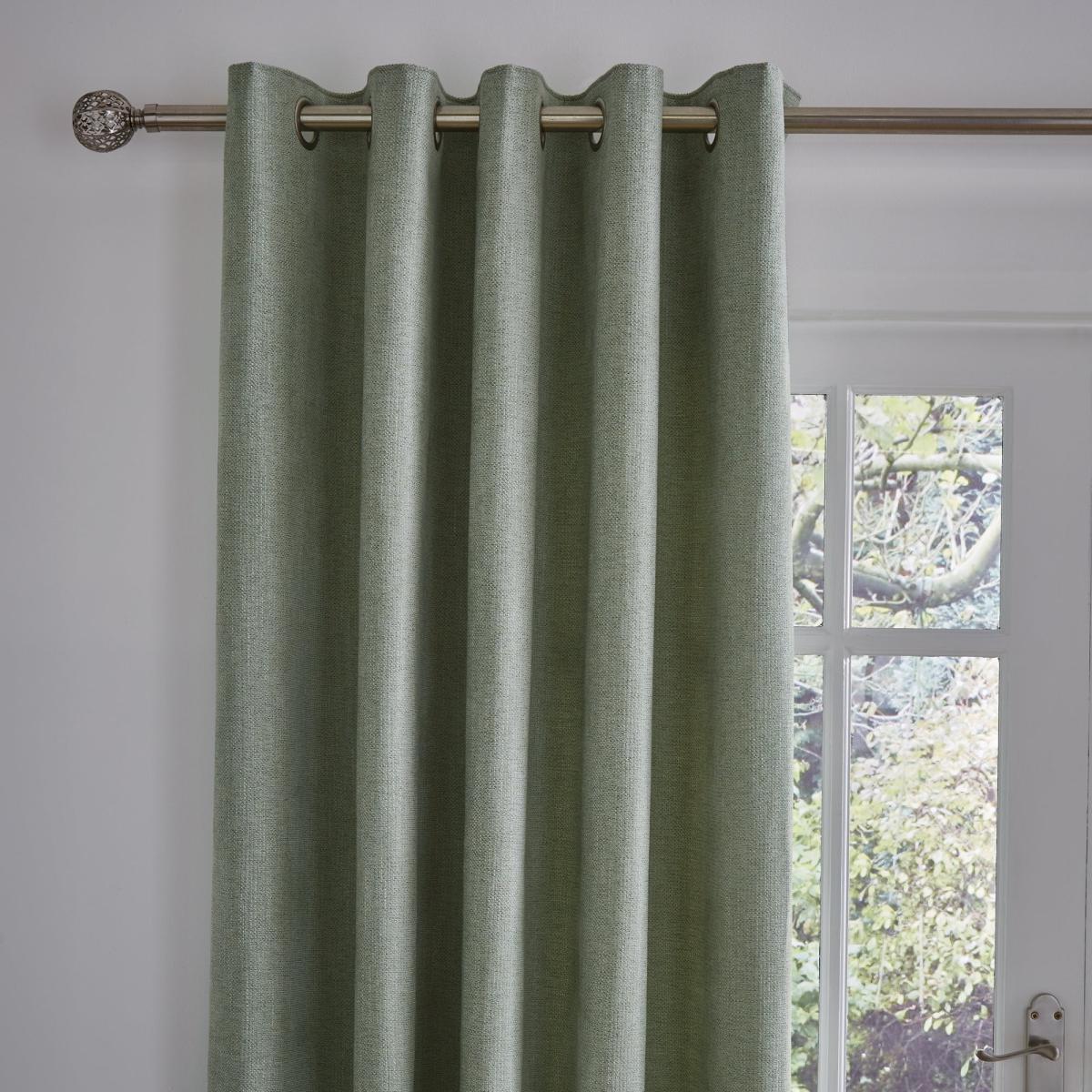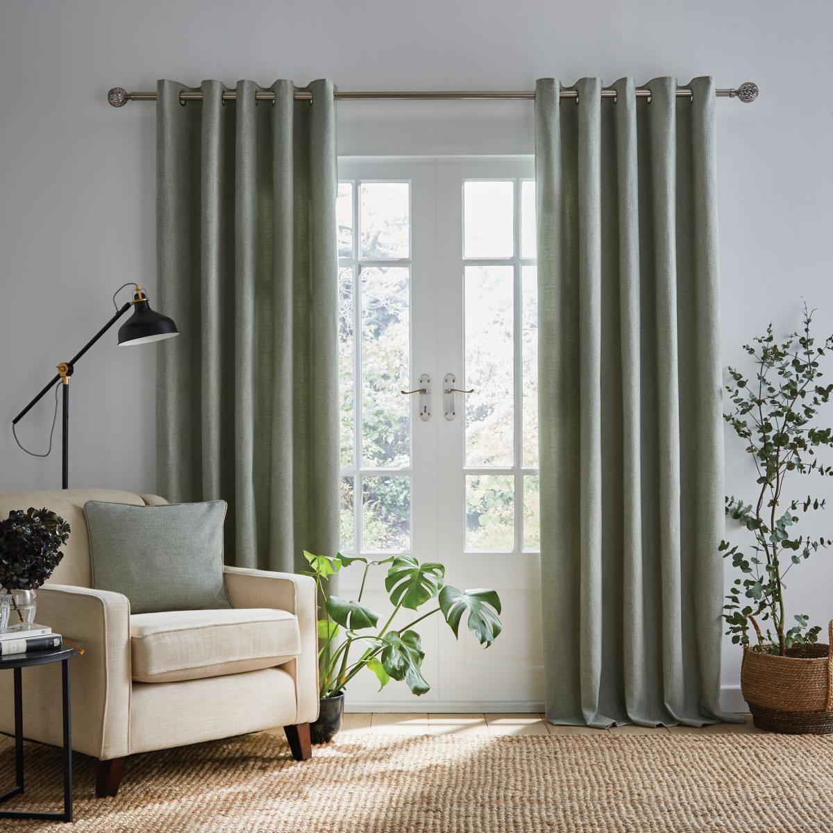 Crafted from sumptuously smooth chenille fabric for a soft textured finish, the stylish Wynter thermal curtains are perfect to complement a variety of decorative styles. Finished in a light and refreshing sage green colourway, these curtains feature a thermal coating and help to insulate your home through all seasons by blocking external heat in summer and prevent cool draughts in winter while providing added privacy. These versatile curtains come complete with a stylish and sophisticated eyelet header for easy installation and smooth movement across your curtain pole. Available in a selection of sizes to suit your requirements. A coordinating cushion is available to purchase separately. Please note: these curtains are sold as a pair. Professional cleaning in Hydrocarbon or equivalent recommended.