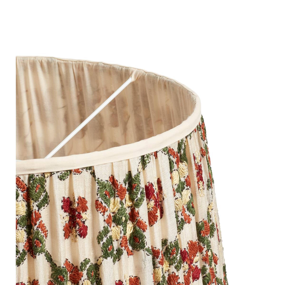 The OKA X Cabana lighting collection is a collaboration between. Cabana Magazine. Founder Martina Mondadori and OKA Co-Founder Sue Jones. The design of the Arabesque is a lovely fusion of the pair’s design ethos: it’s design first came to life when Sue found a beautiful piece of fabric in a market in India, Martina then reimagined the pattern incorporating Moroccan influences. Crafted by skilled artisans in Delhi, the pattern is traced onto the finest tussar silk, which is then intricately hand embroidered with cotton and lined before being gathered on a metal frame. The embroidery style is a herringbone stitch based upon traditional phulkari embroidery, which is a style that originates from Punjab and dates back to the 15th century. It takes three to four craftspeople up to 12 days to create each one; due to this handmaking process, each one will be utterly unique. The shade is available in two colourways and two sizes, this orangey red and green lampshade is the larger version. Cabana Magazine. Was created to inspire a generation of globetrotters with its biannual publication. The Casa Cabana homeware collection is inspired by the pages of the collectible magazine, featuring one-of-a-kind pieces assiduously collected by Martina on her travels.