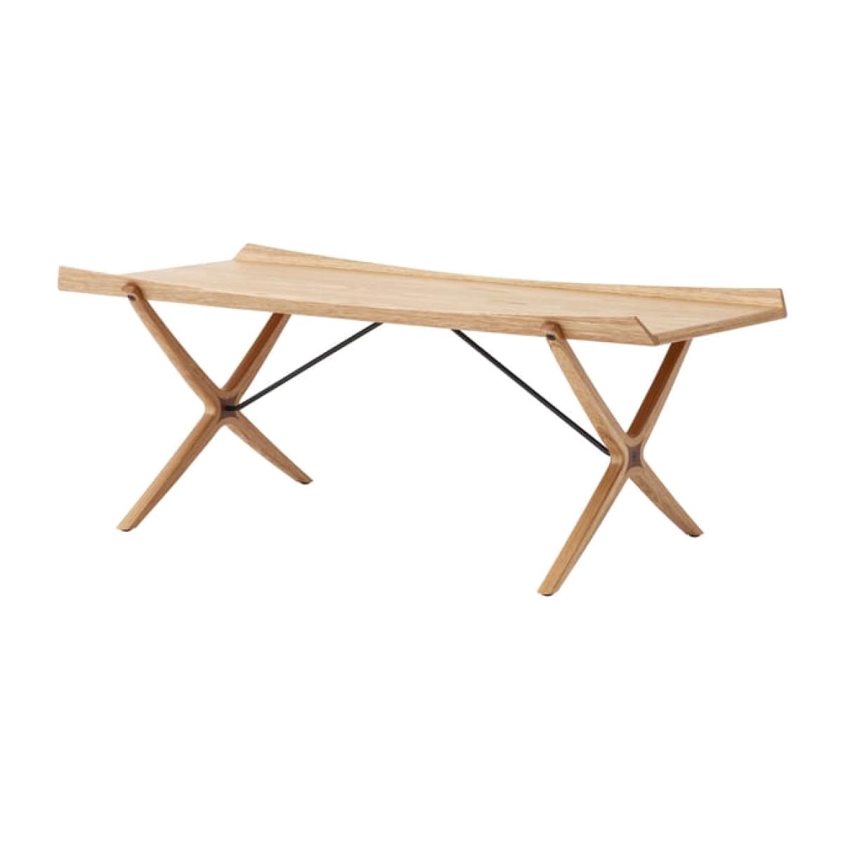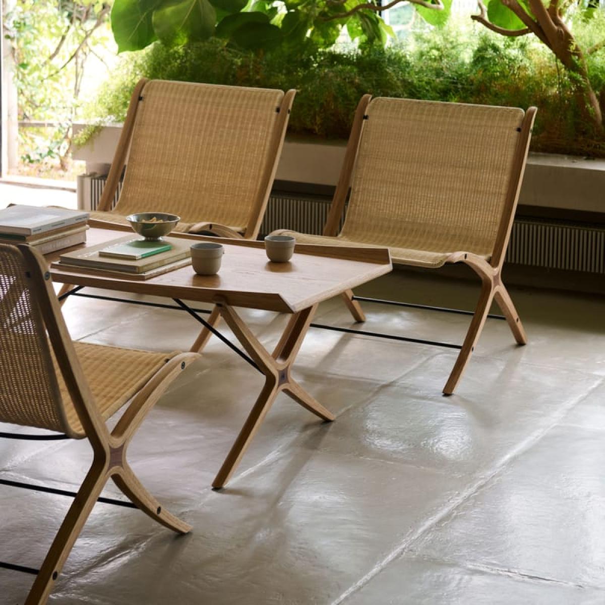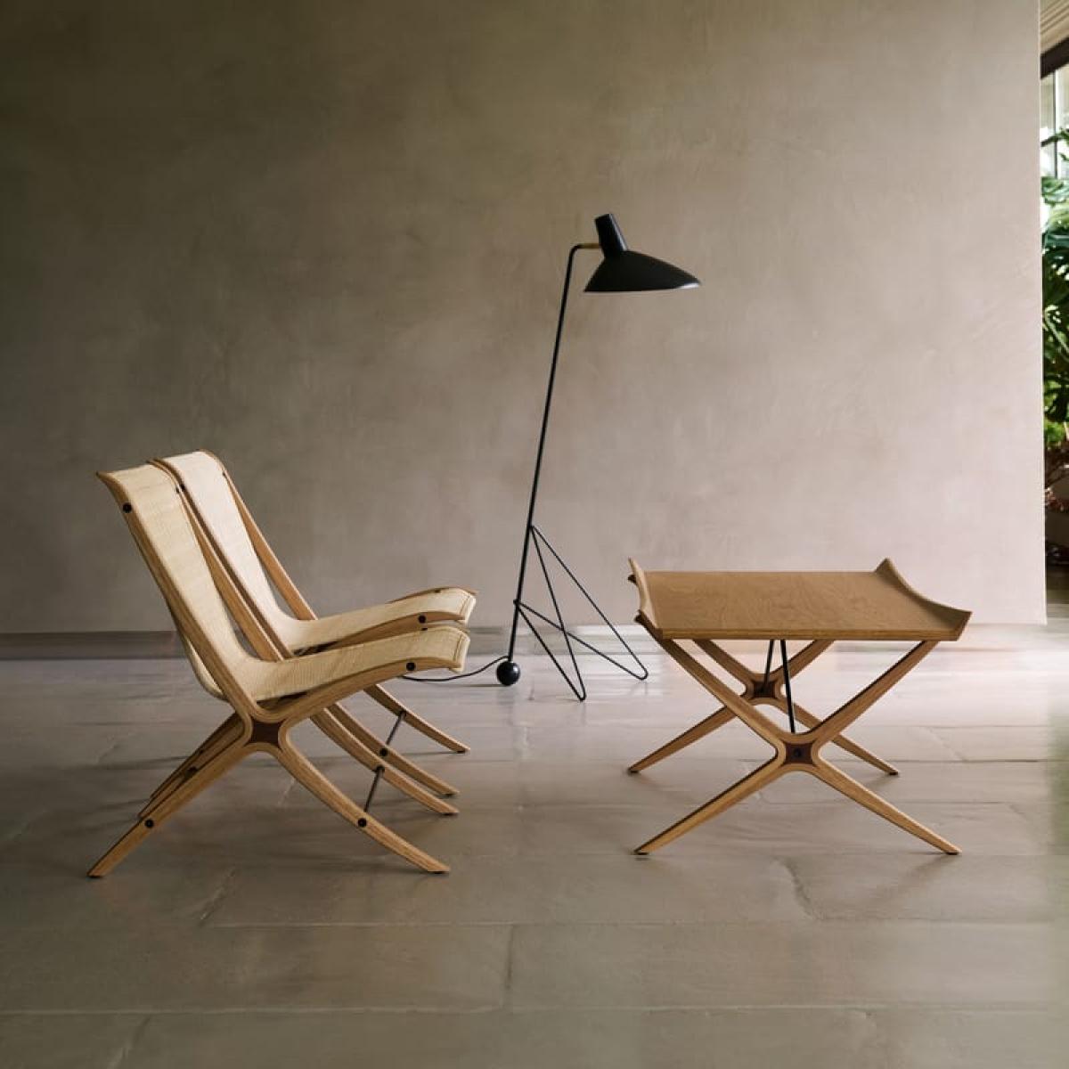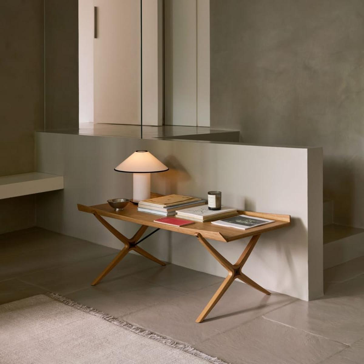 The ''X'' Coffee table was designed in 1959 by Peter Hvidt (1916-1986) and Orla Mølgaard-Nielsen (1907-1993): these mid-20th-century Danish design pioneers took an avant-garde approach to industrialized production. Today, their work is exhibited at MoMA, the National Gallery in Melbourne and the Design Museum in Copenhagen. The X coffee table is the fruit of years of experience and complicity between the two designers, who were enamored of the traditional Danish craft techniques they learned at the Copenhagen School of Arts and Crafts. Originally conceived in 1959 and resurrected from family archives, the X table draws its unique design from ancient Egyptian folding chairs. Originally conceived as a companion piece to the X chair, the X table takes up its basic principles, with a sloping frame and an ingenious use of Wood. In detail: Variation : Oak Brand : &tradition Designer : Orla Mølgaard-Nielsen - Peter Hvidt Type : Coffee table Colour : Oak Material :Molded oak veneer (veneer sheets pressed around a solid wood insert) - Supports: powder-coated steel - Plastic Furniture glides Dimensions : 120 x 61 cm x H 47 cm Weight : 27.5 lb Characteristics : Danish design icon - Creation date: 1959 - FSC-certified Wood Show less