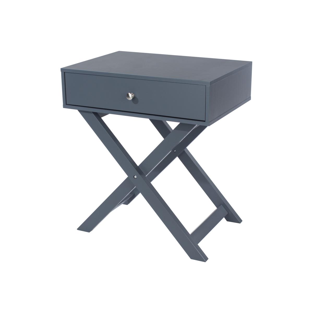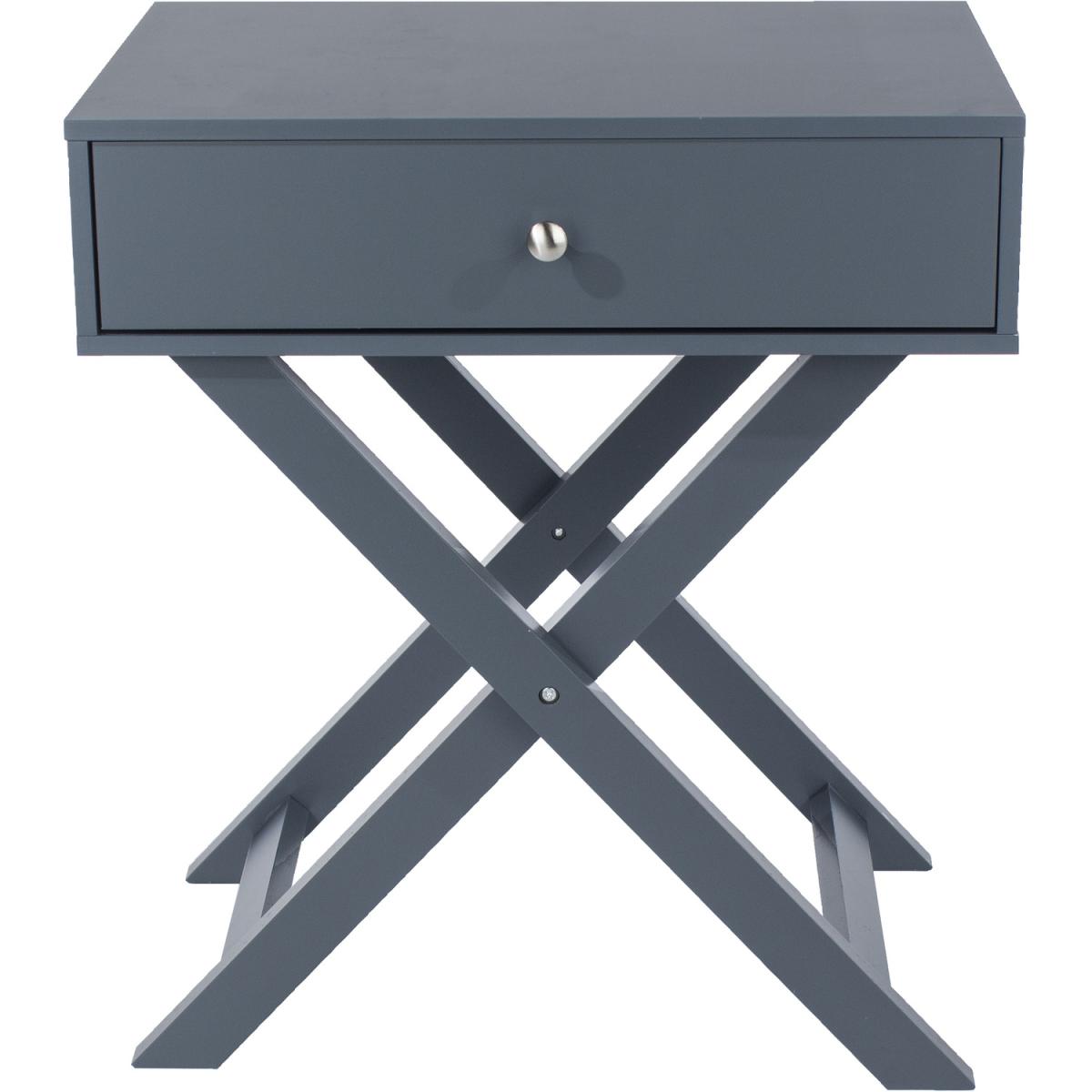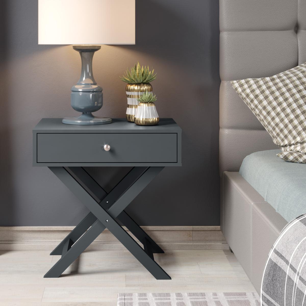 With a very clean and modern design, the X Leg 1 Drawer Bedside Cabinet will add style to your bedroom and bring some extra practical storage. The contemporary x-leg helps this bedside table look compact and sophisticated, while the paint finish adds a crispness that will fit in with any decor. A useful drawer will be perfect for storing snacks, a book, or your socks and underwear, while the top is the ideal place to keep your bottle of water while you sleep. This X Leg 1 Drawer Bedside Cabinet is available in white, midnight blue/grey and light grey paint finish to suit your decor.