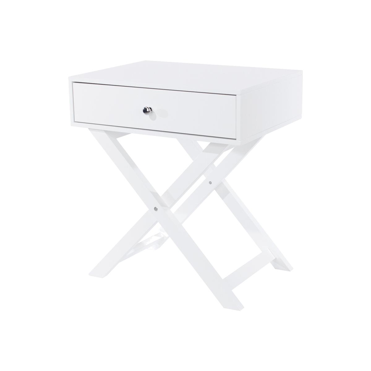 With a very clean and modern design, the X Leg 1 Drawer Bedside Cabinet will add style to your bedroom and bring some extra practical storage. The contemporary x-leg helps this bedside table look compact and sophisticated, while the paint finish adds a crispness that will fit in with any decor. A useful drawer will be perfect for storing snacks, a book, or your socks and underwear, while the top is the ideal place to keep your bottle of water while you sleep. This X Leg 1 Drawer Bedside Cabinet is available in white, midnight blue/grey and light grey paint finish to suit your decor.
