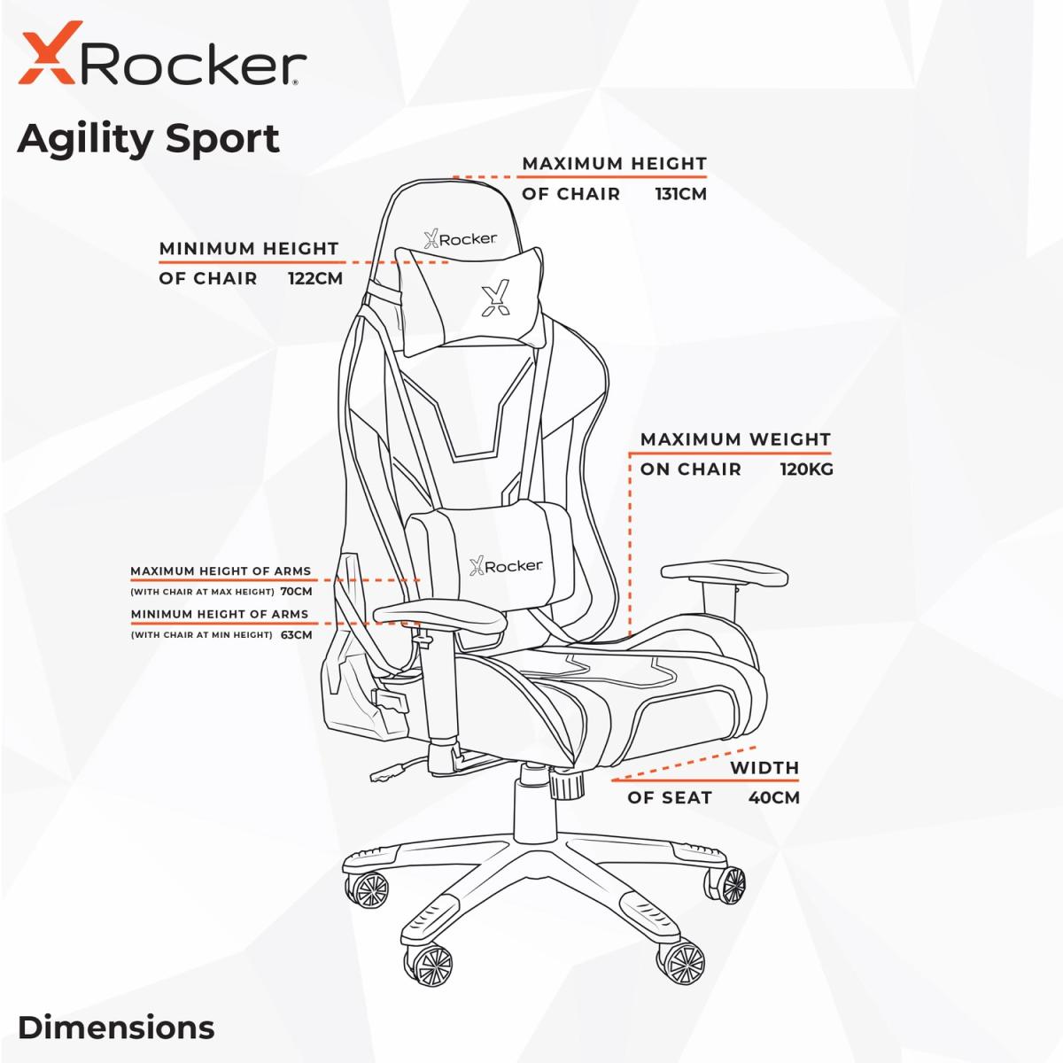 The X Rocker Agility is a supremely stylish racing inspired gaming chair. Featuring a soft and durable faux leather material, a striking faux leather panel layout, height adjustable base, tilt-able backrest, lumbar and neck cushions for superior comfort over those long gameplay sessions.