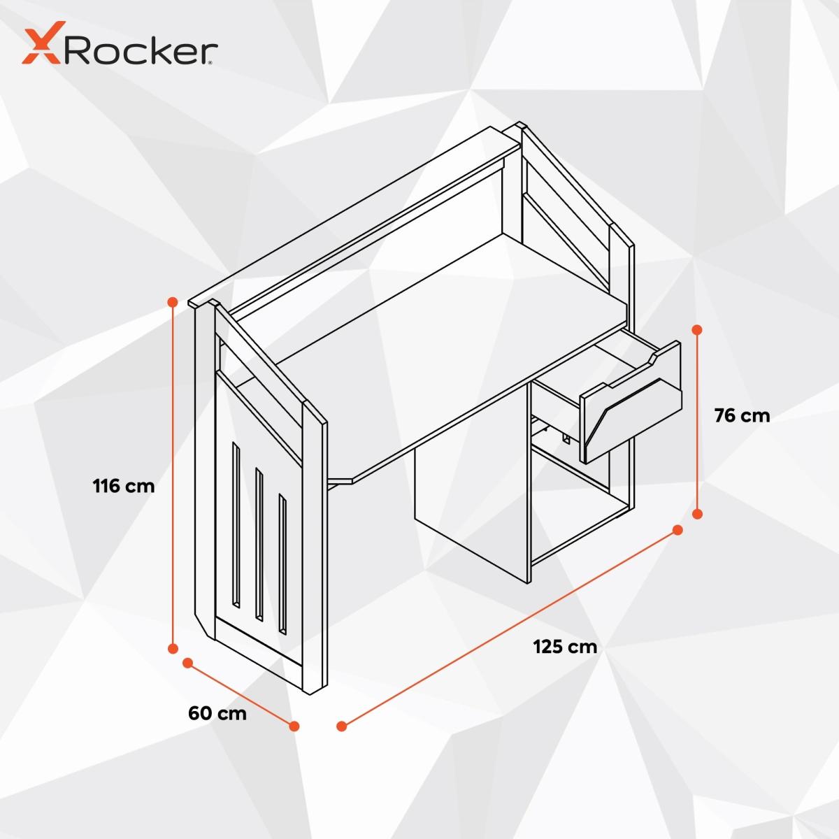 * Wooden desk* Large table top* Built in drawer* Shelving This gaming desk features an extra-large surface measuring 120cm wide, making it ideal for multi-monitor setups that enhance your gaming experience. This desk includes a built-in drawer for convenient storage of your gaming essentials, ensuring everything you need is close at hand and neatly organised. Its stylish wooden construction combines solid wood and MDF for both durability and a unique aesthetic. Additionally, the dual shelves provide ample space while keeping your PC towers elevated and safe from potential damage, creating a functional and appealing gaming environment.