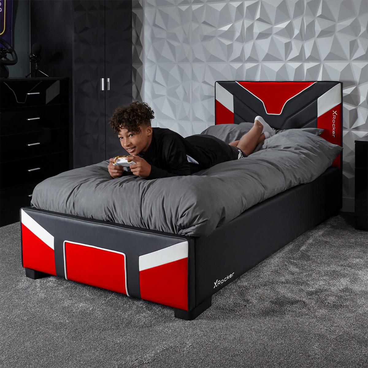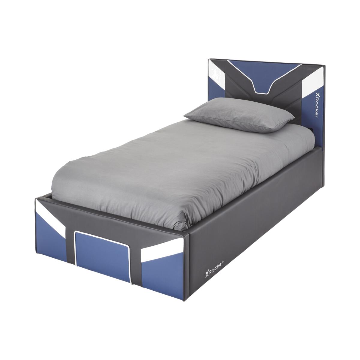 Immerse yourself in the world of e. Sports with the new X Rocker Cerberus Bed-in-a-Box, the world’s first gaming bedstead inspired by competitive gameplay. Built for those who eat, sleep and breathe gaming, this innovative bed frame features a luxurious faux leather headboard with a striking e. Sports racing design, that provides soft and breathable comfort throughout the night. Available in blue or red with 3 sizes available, this gaming bed-in-a-box arrives flat packed in one carton for convenience and simple self-assembly.