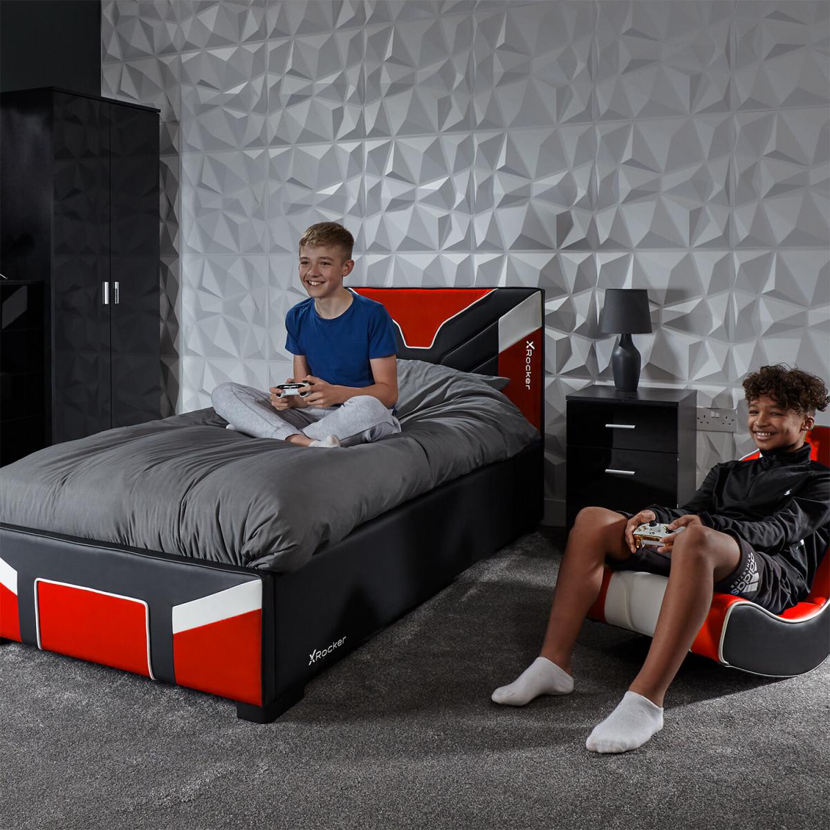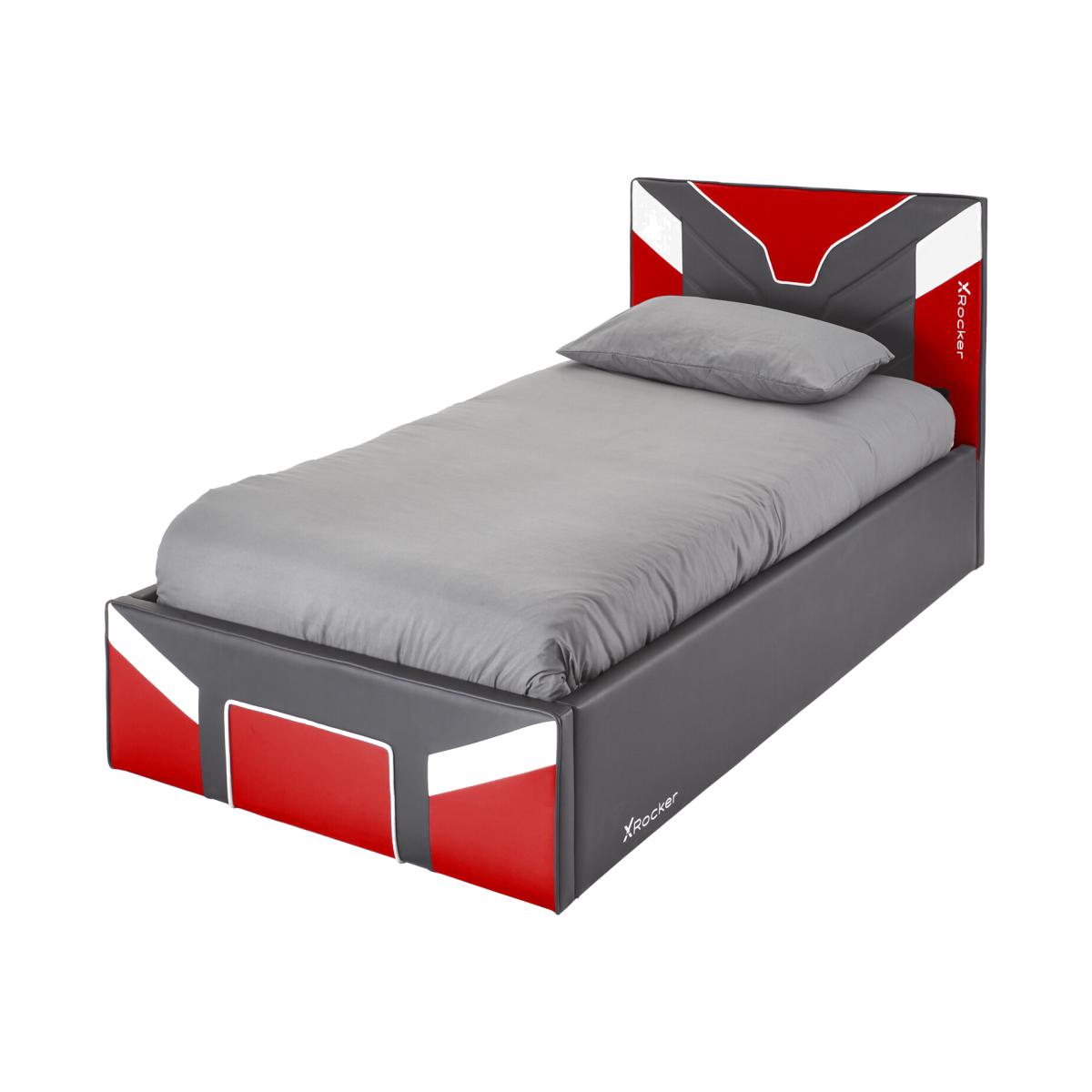 Immerse yourself in the world of e. Sports with the new X Rocker Cerberus Bed-in-a-Box, the world’s first gaming bedstead inspired by competitive gameplay. Built for those who eat, sleep and breathe gaming, this innovative bed frame features a luxurious faux leather headboard with a striking e. Sports racing design, that provides soft and breathable comfort throughout the night. Available in blue or red with 3 sizes available, this gaming bed-in-a-box arrives flat packed in one carton for convenience and simple self-assembly.