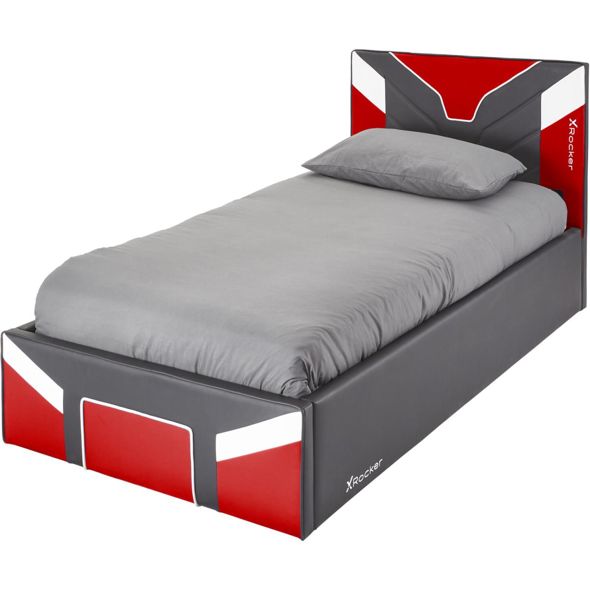 Immerse yourself in the world of e. Sports with the new X Rocker Cerberus Bed-in-a-Box, the world’s first gaming bedstead inspired by competitive gameplay. Built for those who eat, sleep and breathe gaming, this innovative bed frame features a luxurious faux leather headboard with a striking e. Sports racing design, that provides soft and breathable comfort throughout the night. Available in blue or red with 3 sizes available, this gaming bed-in-a-box arrives flat packed in one carton for convenience and simple self-assembly.