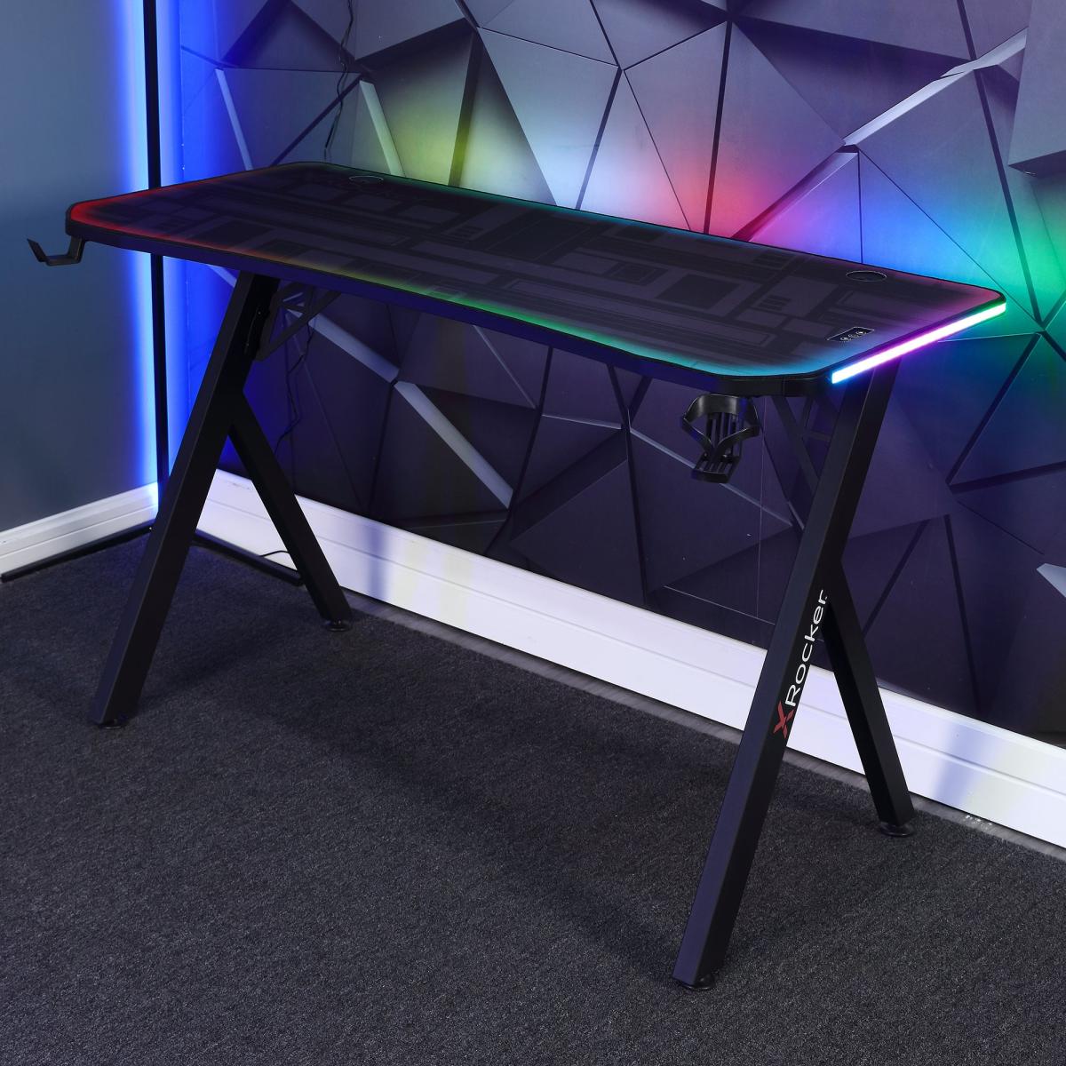 X Rocker Lumio RGB Gaming Desk with App Controlled Lights Black