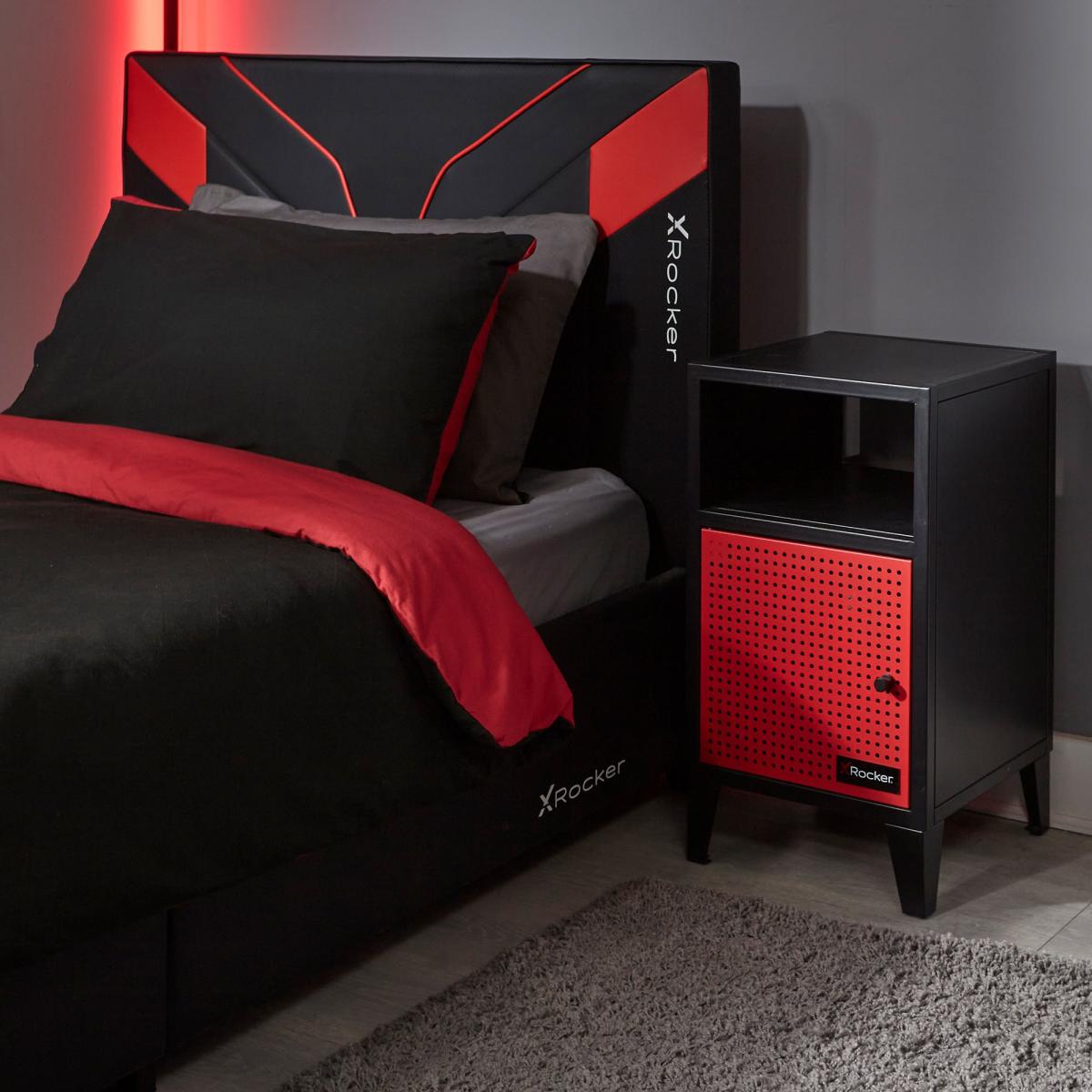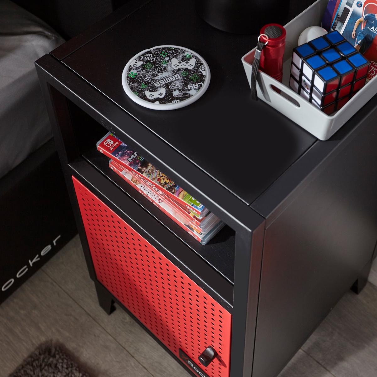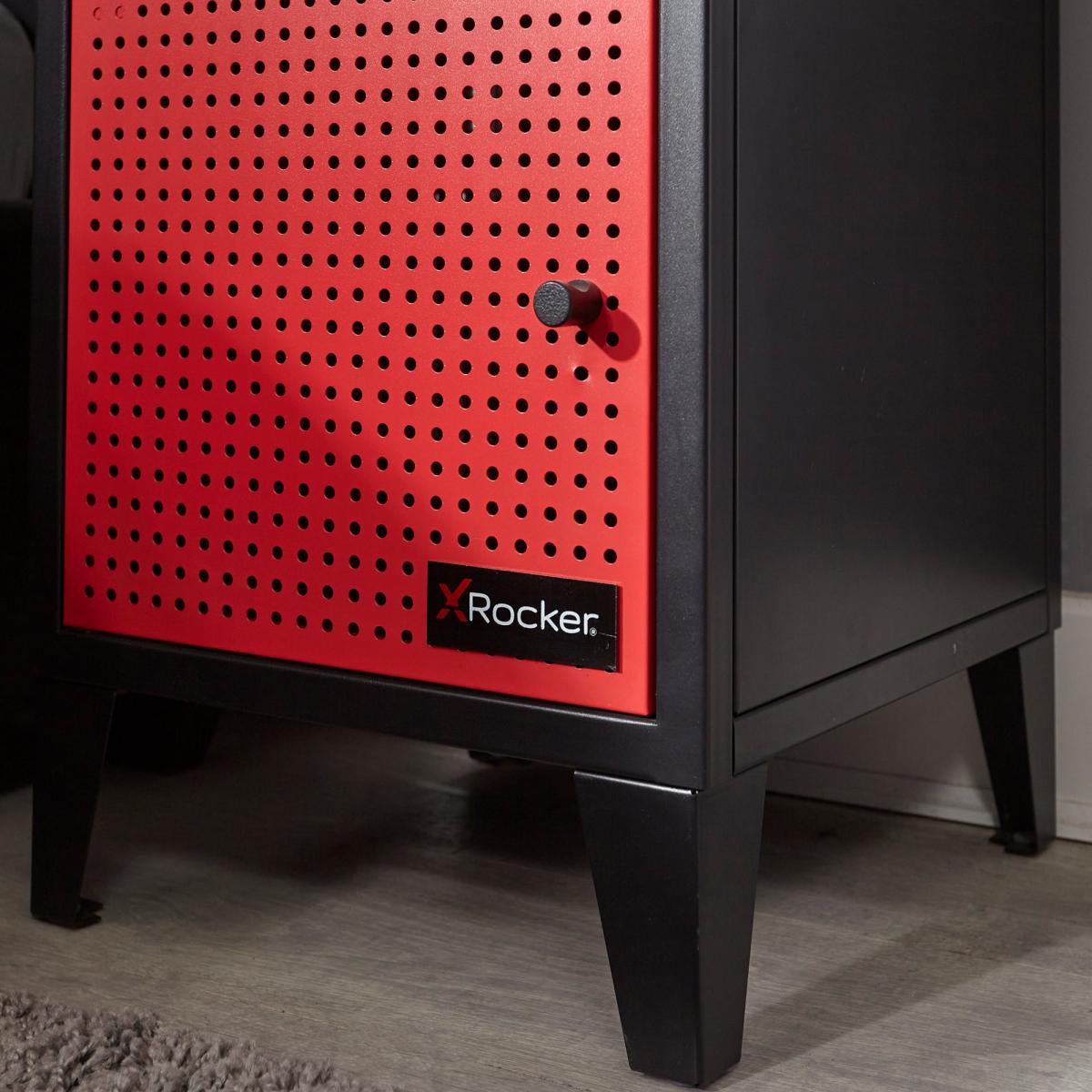 Keep your bedside essentials close by with the X Rocker MESH TEK Bedside Cabinet with Single Cube Storage. Constructed from robust steel in a powerful red and black colour scheme, this single unit bedside table is designed with a free-standing structure and offers flexible storage which can be paired with other items in the Mesh Tek range for an extended modular design. With open shelving to display collectables, to keep phones, remote control and other bits at hand, this storage unit has considered visilbility and accessibility. To organise clutter, the perforated cabinet door provides a stylish storage solution with optimal air ventilation so your consoles, devices and other personal items won’t become overheated.