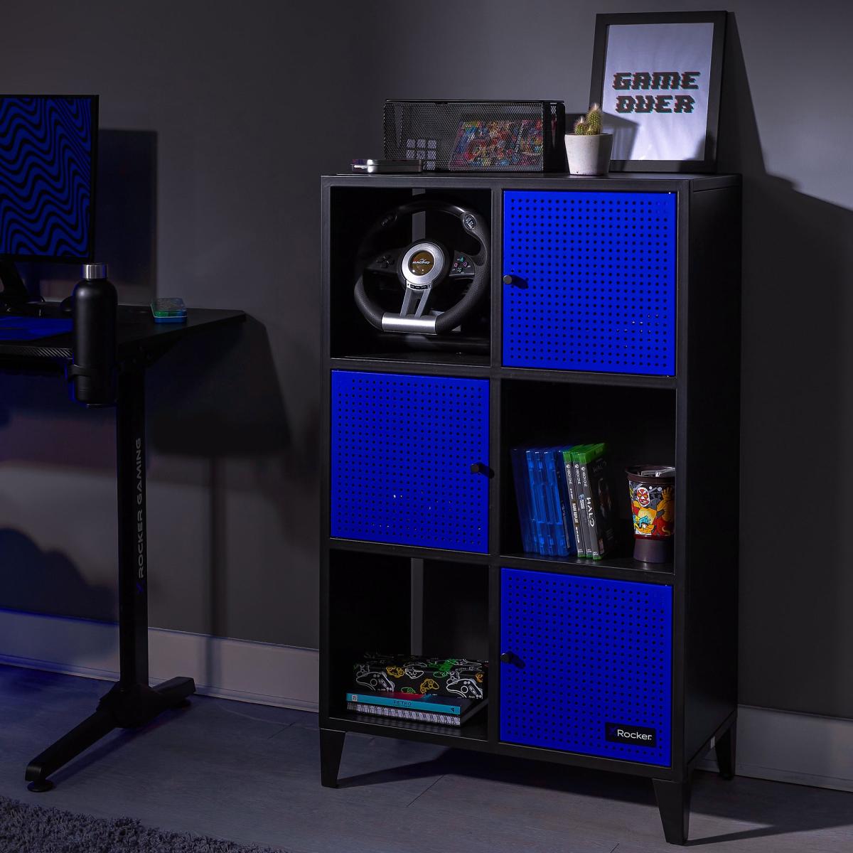 X Rocker Mesh Tek Tall 6 Cube Storage Unit Blue