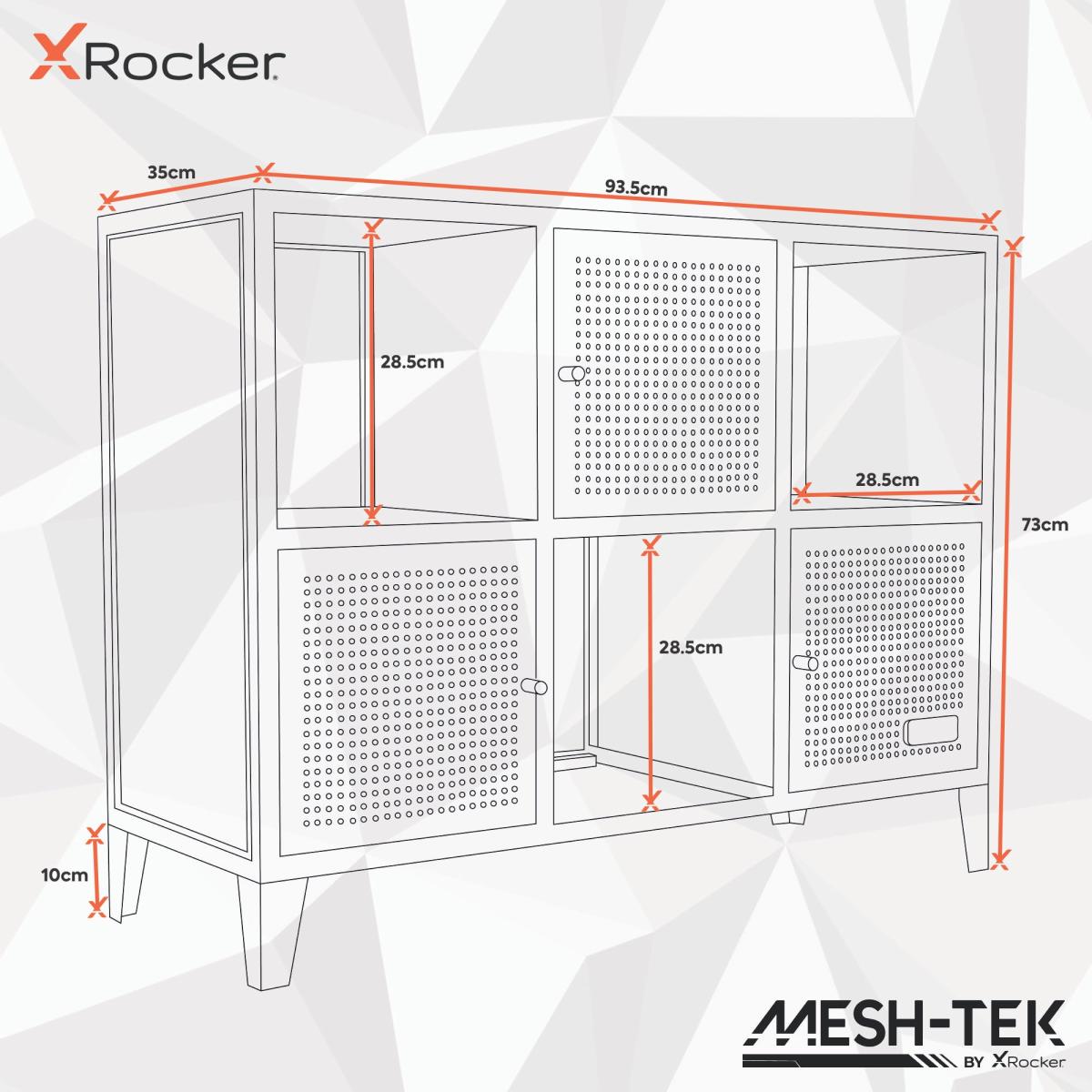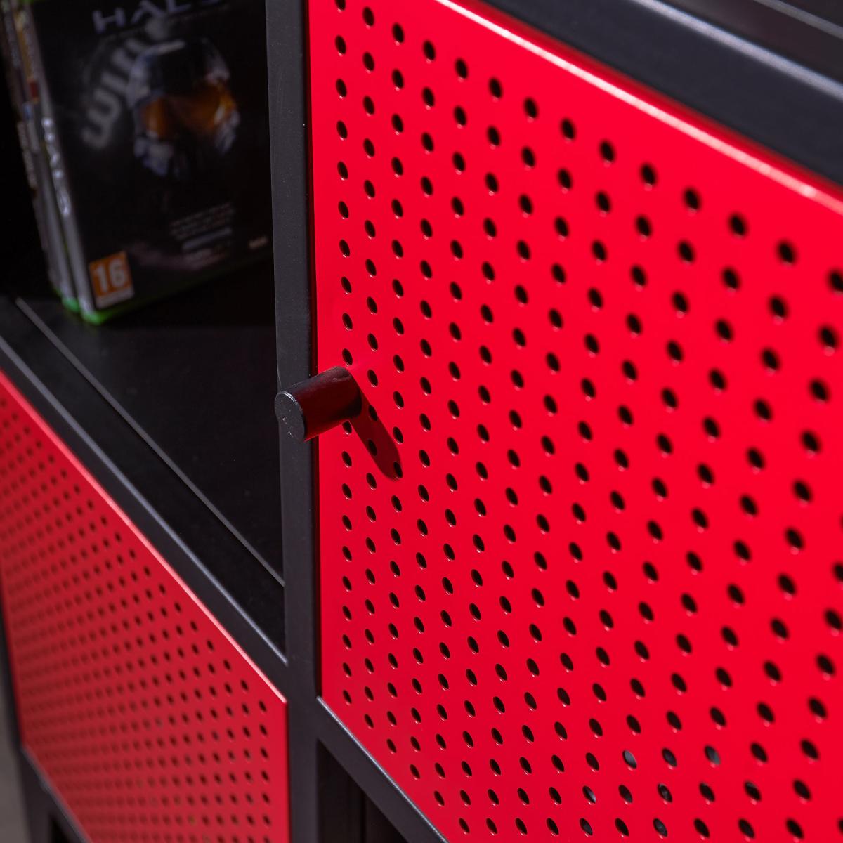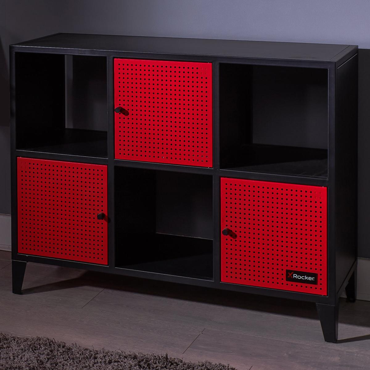 Show off your collectibles and organise prized possessions with the neat display of the X Rocker MESH TEK Wide Shelf Cabinet with 6 Cube Storage. Constructed from robust steel in a powerful red and black colour scheme, this compact shelf cabinet unit can be placed in a bedroom, games room or any part of the house providing ample storage space which can be paired with other items in the Mesh Tek range for an extended modular design. With 3 open shelving cubes to display games, collectibles and other impressive belongings, this storage unit has considered visilbility and accessibility. The 3 perforated cabinet doors also provide a stylish storage solution and the chance to hide clutter with optimal air ventilation, so your consoles, devices and other personal items won’t become overheated.