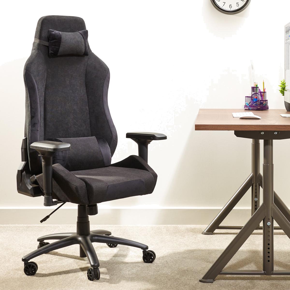Bring this racing-inspired desk chair to your home or work desk for premium style, practicality and comfort. Upholstered in a luxurious soft touch chenille fabric for a neutral yet stylish setup, the X Rocker Messina Deluxe Fabric Office Chair is perfect for any home office decor or gaming room. The 4. D positional armrests offer vertical, horizontal and width adjustments for exceptional support and a height adjustable pedestal base with 360-degree swivel and backrest tilt function allows for fully personalised long-term comfort while you work or play. Optional deeply padded cushions are also included to align to your posture or can be removed completely to suit your seating style.