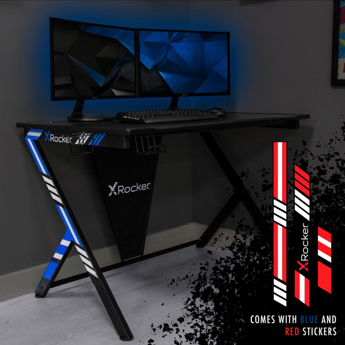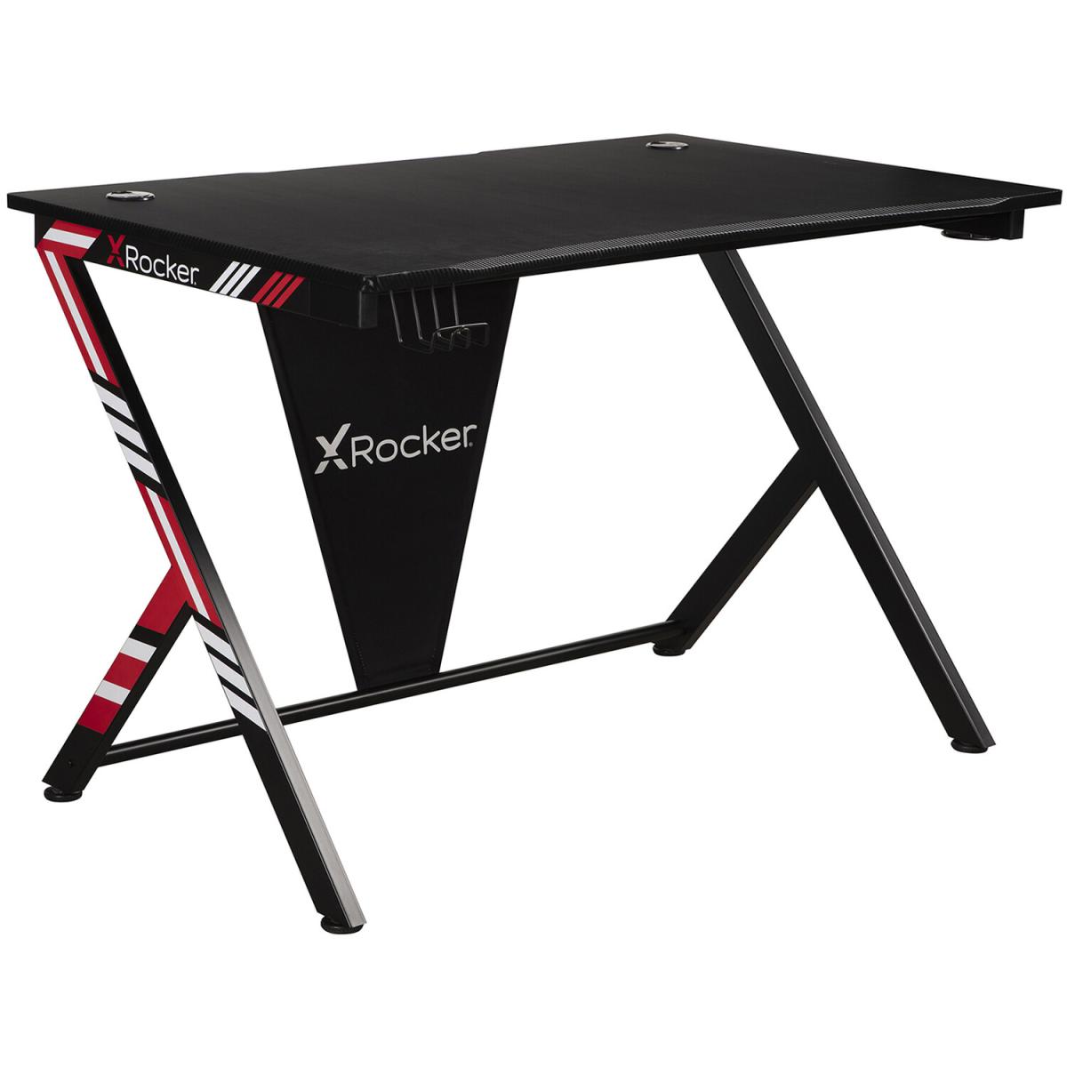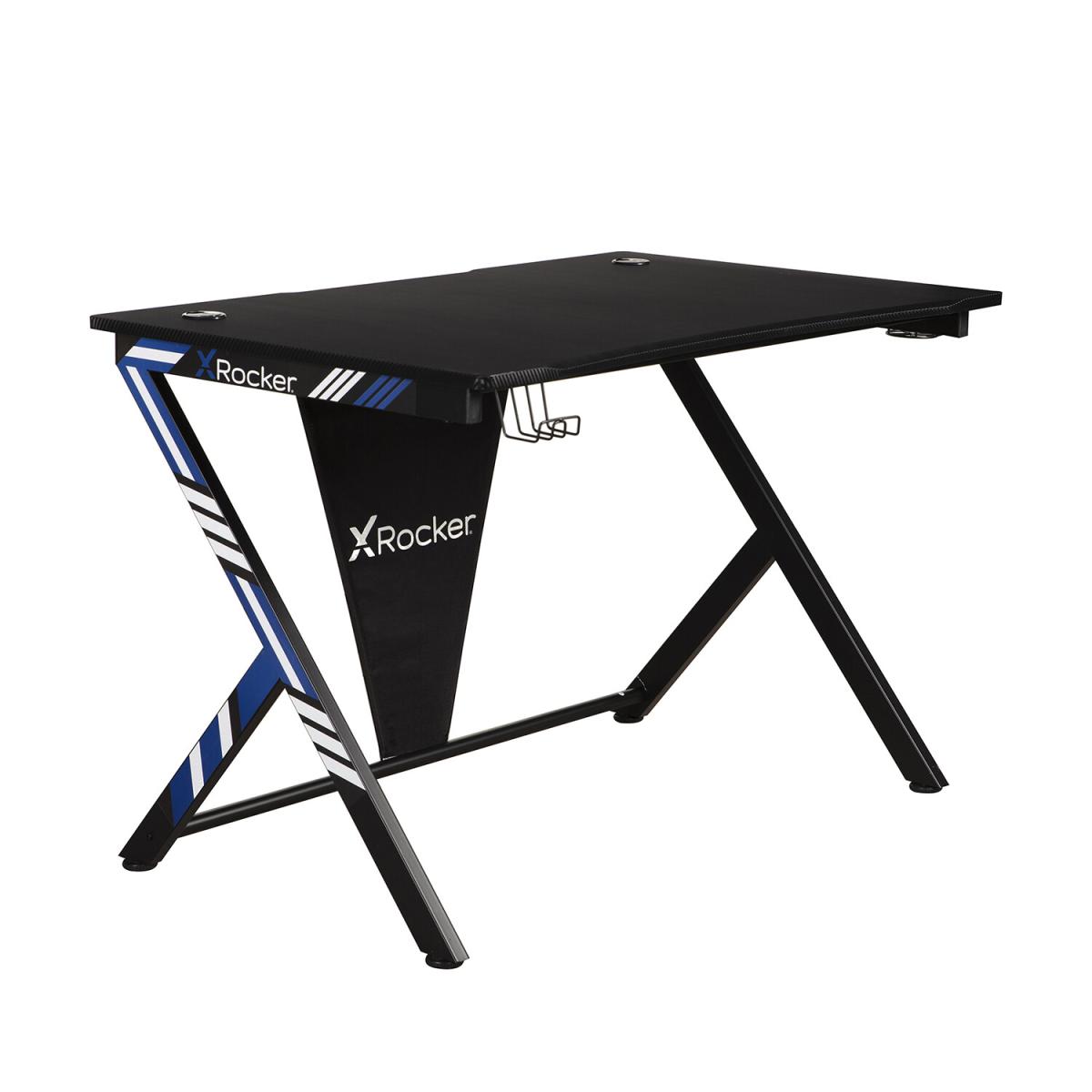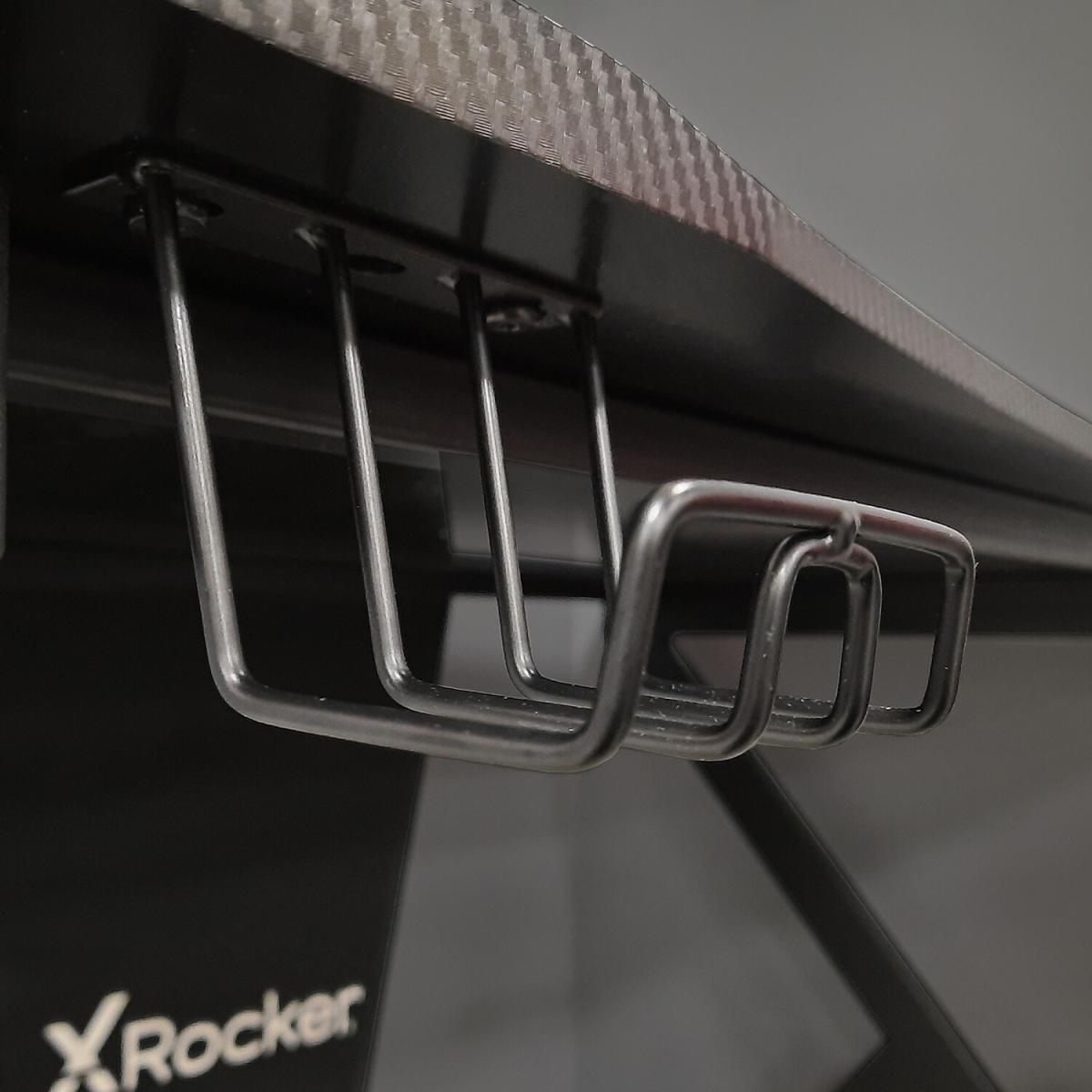 The X Rocker Ocelot Gaming Desk is constructed from heavy-duty steel with a cross-base design for sturdy support, keeping your gear safe even during the most intense gaming sessions. Its cool carbon fibre desktop is presented in modern black and can be easily wiped clean. Avoid spillages with the adjustable and removable handy cup holder when gaming and hang your headset on the hook provided when you're AFK. The 2 cable management portholes will help to keep your gaming station organised and free from wires, maximising your workspace and helping you focus on the game.