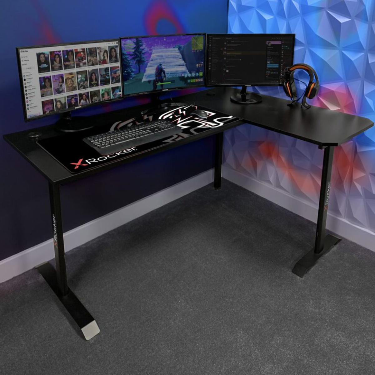 The X Rocker Panther XL brings the next evolution of X Rocker gaming desks. Mixing practicality and supreme style, the Panther XL features a large carbon fibre melamine-coated desktop surface, allowing for multiple monitor setups to help you conquer the gaming world. With 2 cable management port holes, you can keep the action clutter free whilst the included mouse pad provides a smooth, easy glide surface for a stress-free gaming experience. This setup is suitable to be placed left handed and right handed.